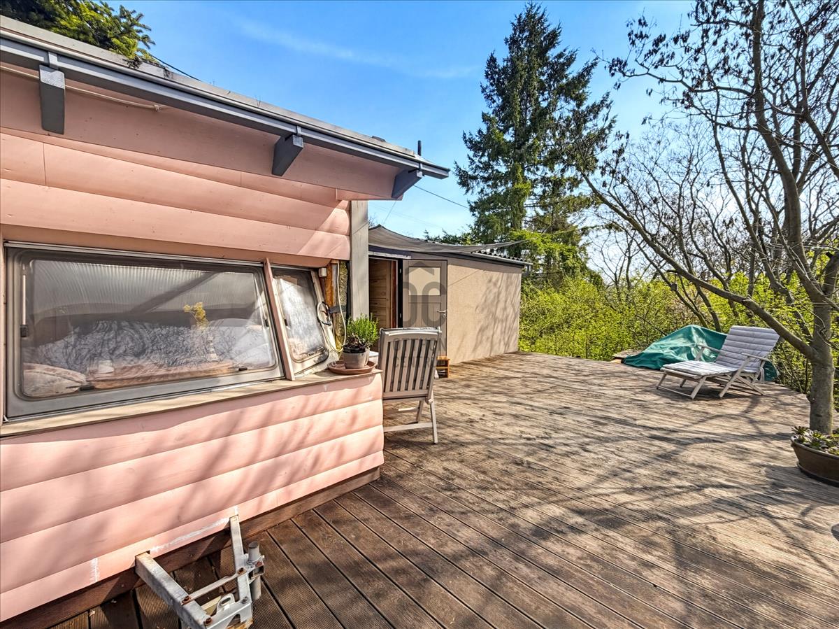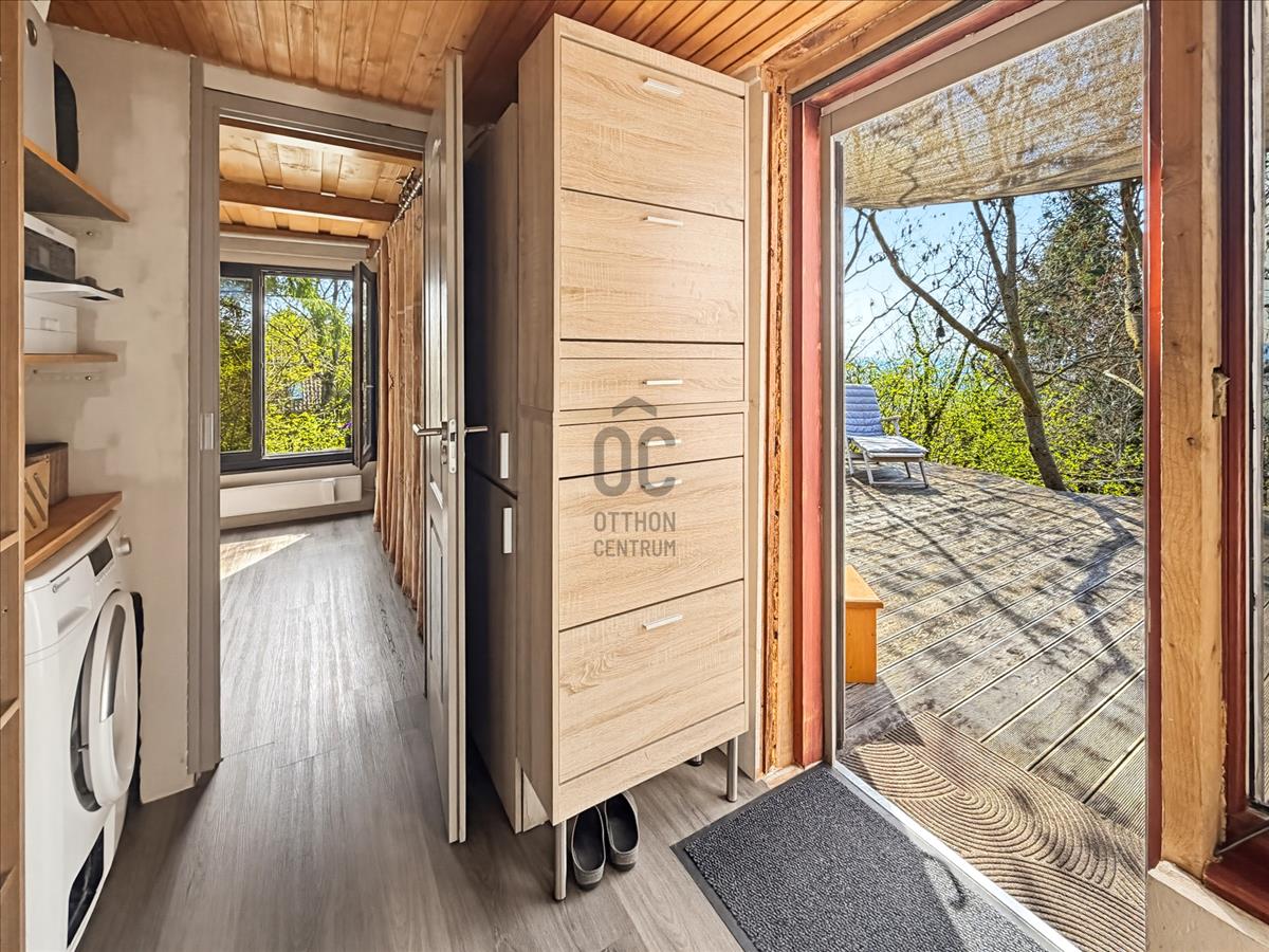 Szentendrén, a Szarvashegy legfelső utcájában, Natura 2000 által határolt utcában, erdei környezetben 39 nm -es tiny house eladó.