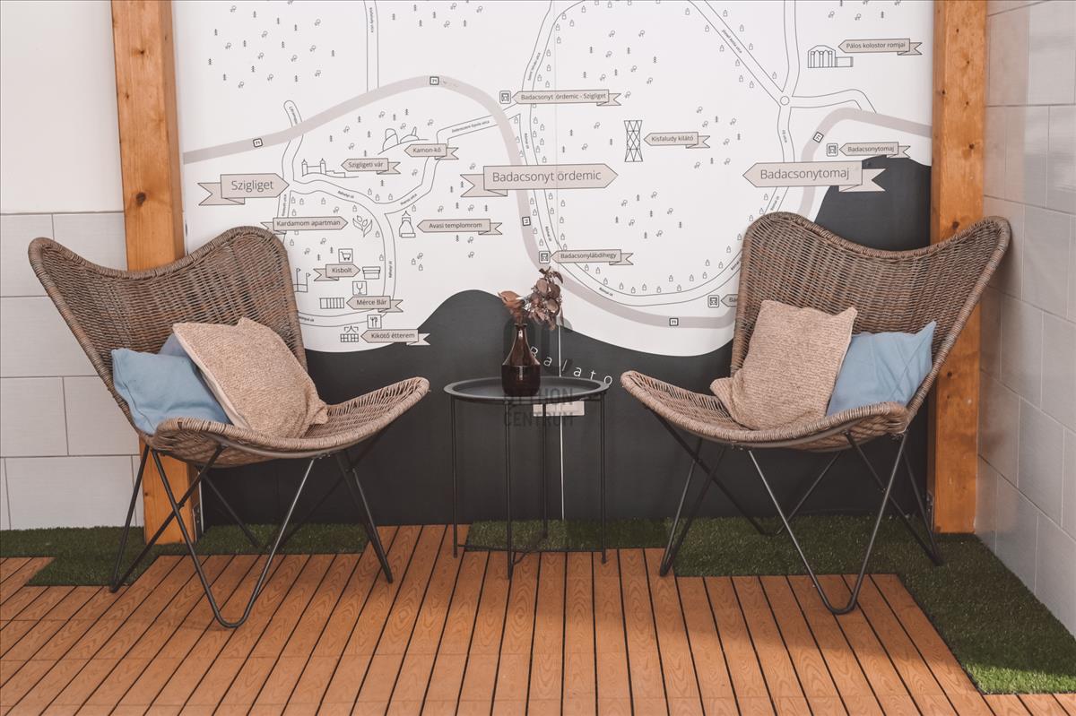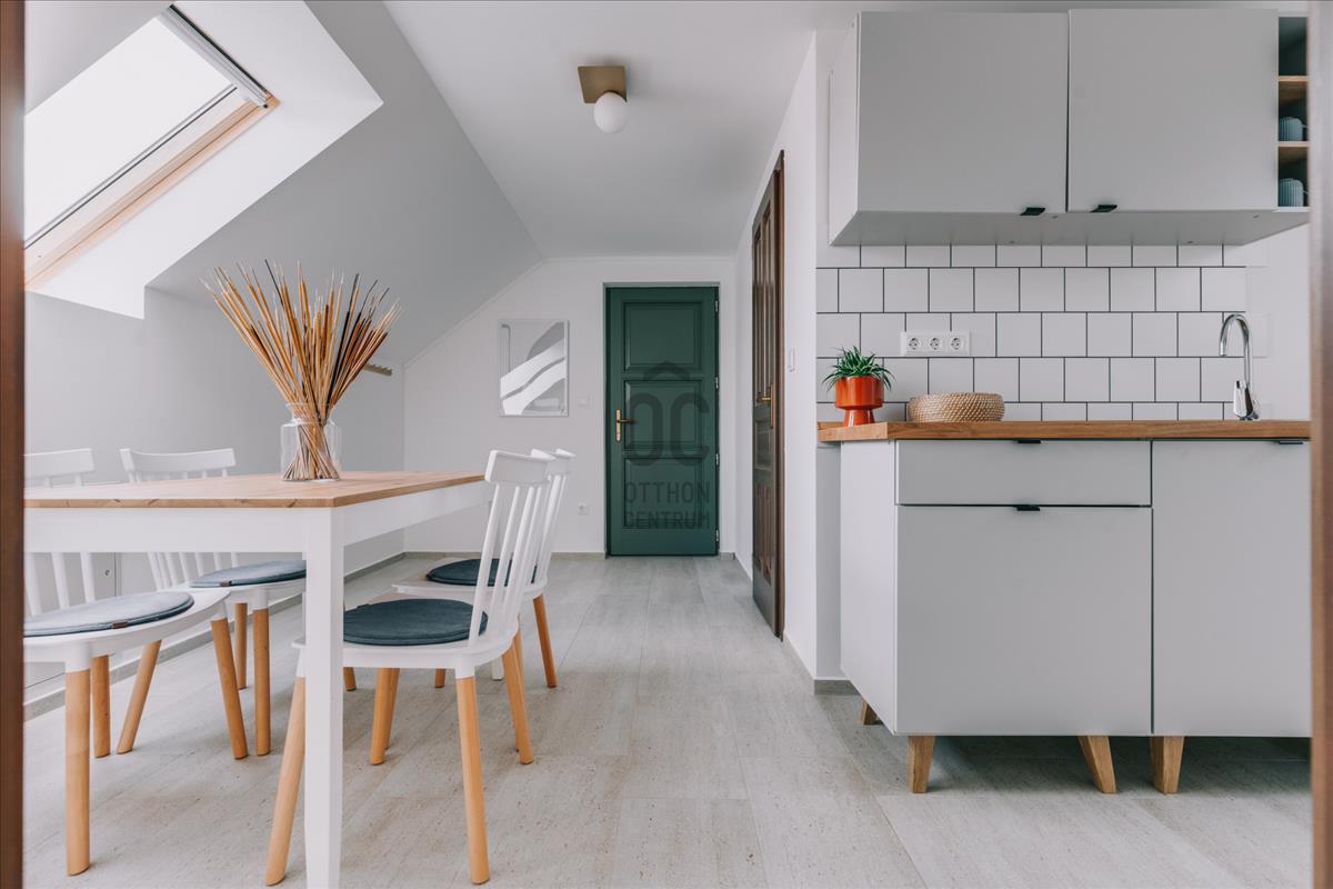 A Balaton-felvidéki stílusjegyek és a modern, letisztult, átgondolt belső kialakítás teszi egyedülállóvá ezt a 2022-ben épült, prémium műszaki tartalommal rendelkező apartmanházat.
