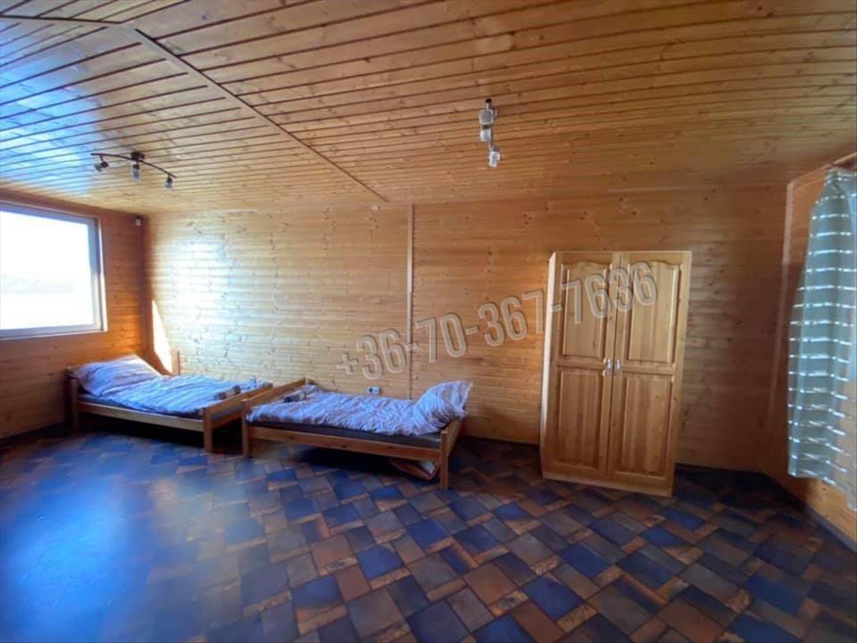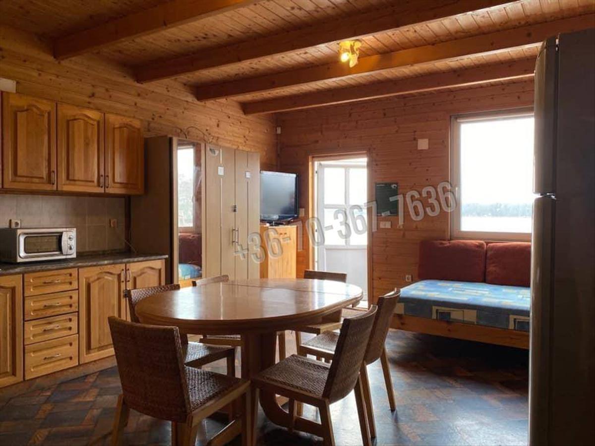 Eladásra kínálunk Tatán a Derítő tavon egy klímás (hűtő/fűtő) karbantartott, kiváló állapotú, téliesített, szigetelt, két apartmanból álló faházat. a két apartman 143m2 alapterületű+53m2 stég tartozik hozzá, közművel. (Víz, villany, csatorna, elektromos fűtés, klíma, Tv-internet) 2 db 72m2 apartmanra van osztva az ingatlan. Jelenleg. 2 Db 72m2 apartmanra van osztva az ingatlan, mely 2x6 fő férőhelyes.