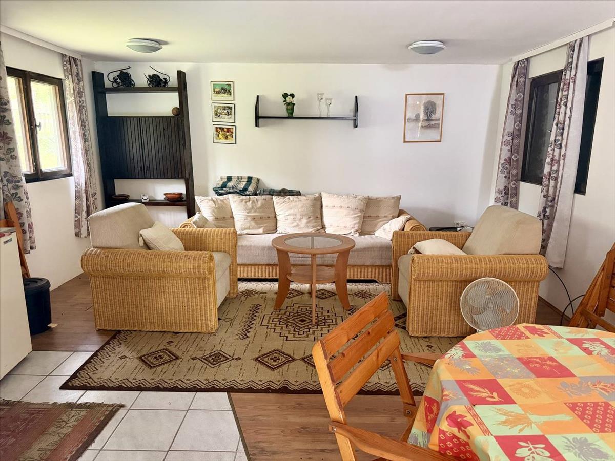 Ami igazán különlegessé teszi az ingatlant, az a környezet: hatalmas fák, csend, erdei hangulat — olyan hely, ahol a nap végén tényleg le lehet lassulni.