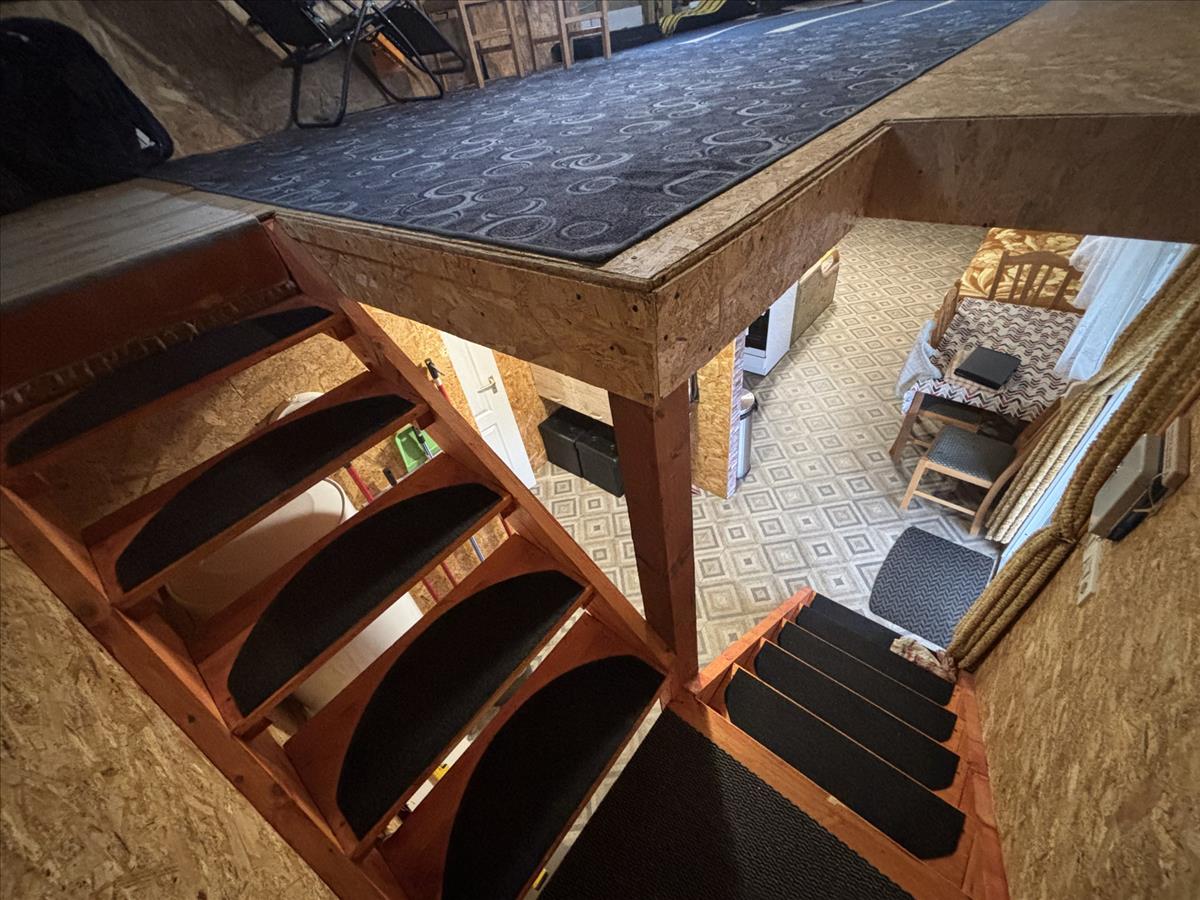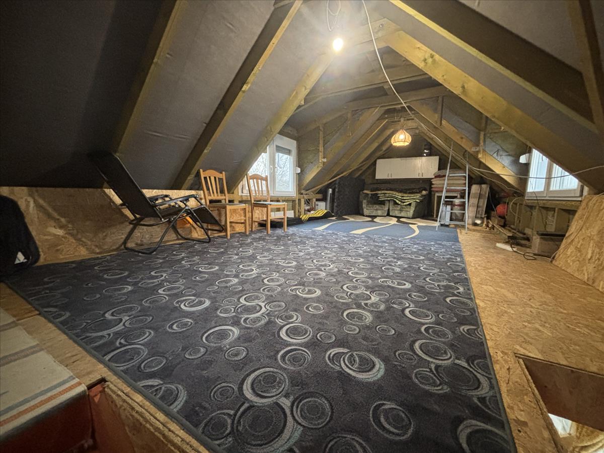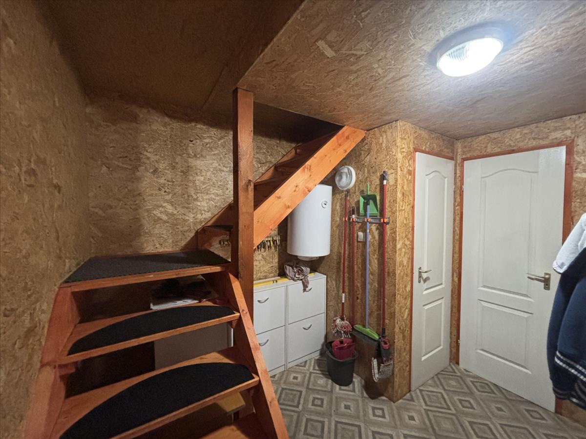 A burkolatok között linóleum és járólap található, a felső szinten osb lap borítás került kialakításra.