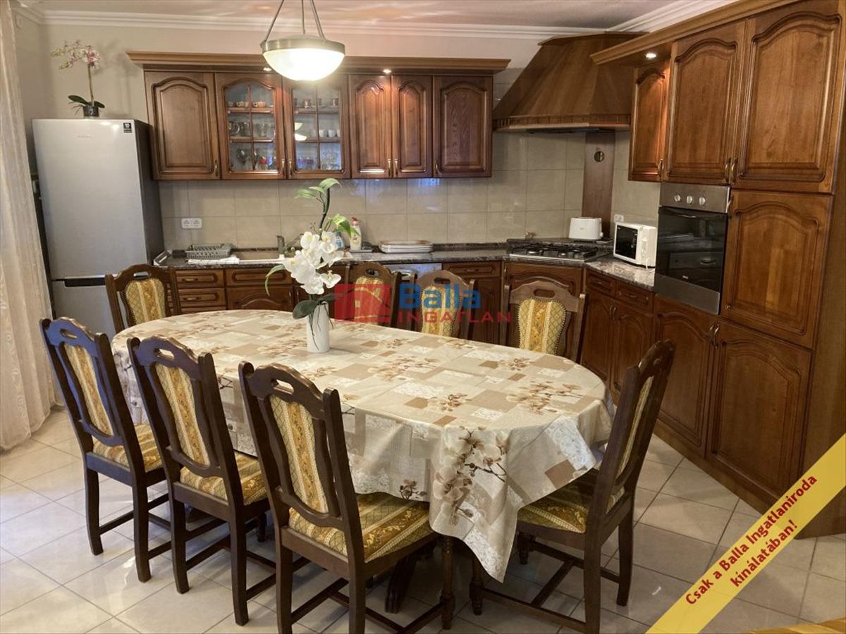 A dupla telek kőfallal körbekerített, így kellő intimitást ad. a telken található épület 130 m2, mely alatt pince is van. a ház előregyártott könnyűszerkezetes technológiával épült és hungarocell szigetelést kapott. Itt említjük, hogy ennél fogva kiváló energetikai mutatókkal rendelkezik, melyről személyesen készséggel tájékoztatjuk! Elrendezését tekintve a földszinten 45 m2-es nappali cserépkályhával várja új tulajdonosát, de az amerikai konyhás étkező is itt kapott helyet. a földszinten egy hálószoba, illetve egy fürdőszoba is rendelkezésre áll. Az emeleti szinten 3 különnyíló szoba ( 2 erkélyes), valamint egy fürdőszoba került kialakításra! Fűtés tekintetében vezetékes gáz kombi kazánnal, radiátoros hőleadókkal és padlófűtéssel, de itt említjük a klímákat, melyek a nappaliban és szobánként értendőek külön hőszivattyús fűtéssel (-25 C fokig helyt állnak).