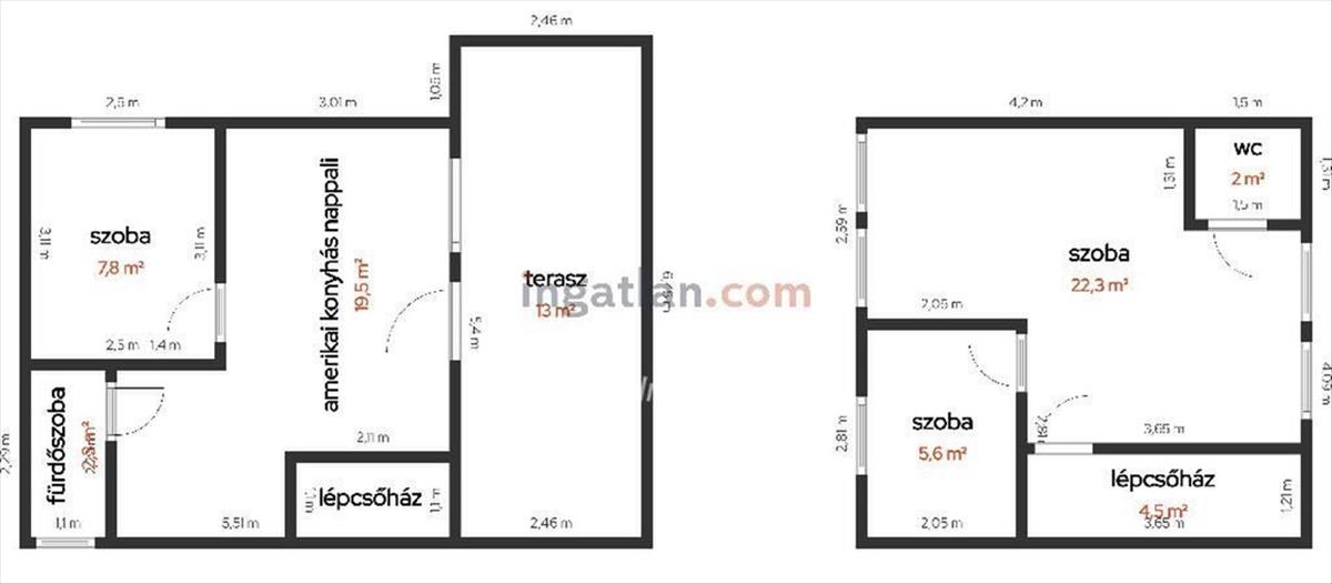 - Földszint: amerikai konyhás nappali, szoba, fürdőszoba