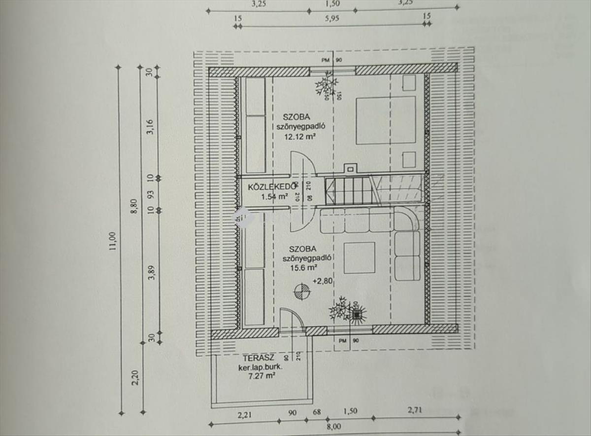 Az ingatlanban 3 szoba, egy félszoba és egy tágas nappali található. Hasznos belső terület kb. 90Nm!