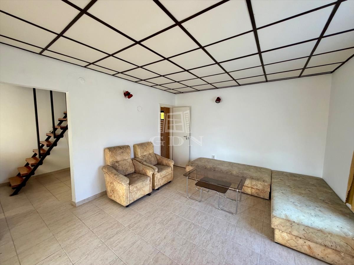 A ház két szintből áll, ahol az alsó szint hasznos lakóterülete 28 m2, 2, 54 m belmagassággal.