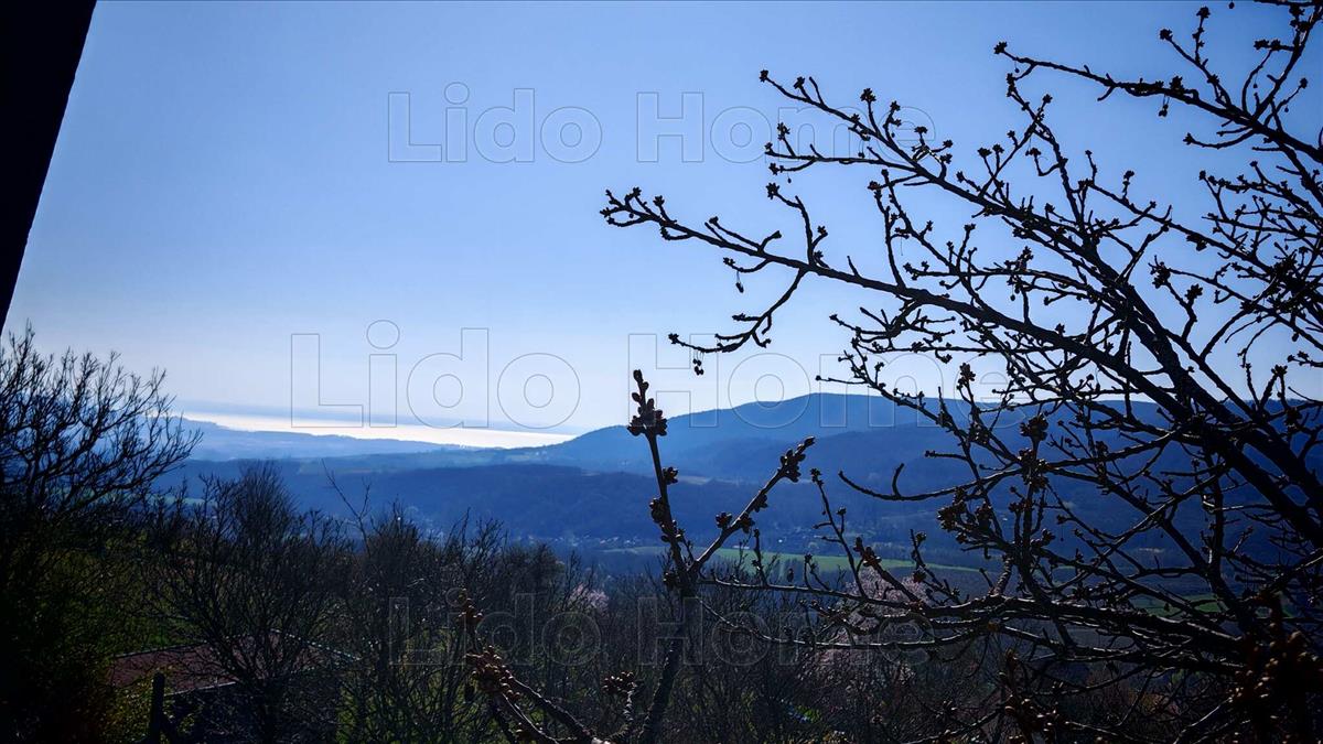 - a telek enyhe lejtése biztosítja az egyedülálló panorámát a környező tájra, Az erkélyről tiszta időben a Balaton is elénk tárul.