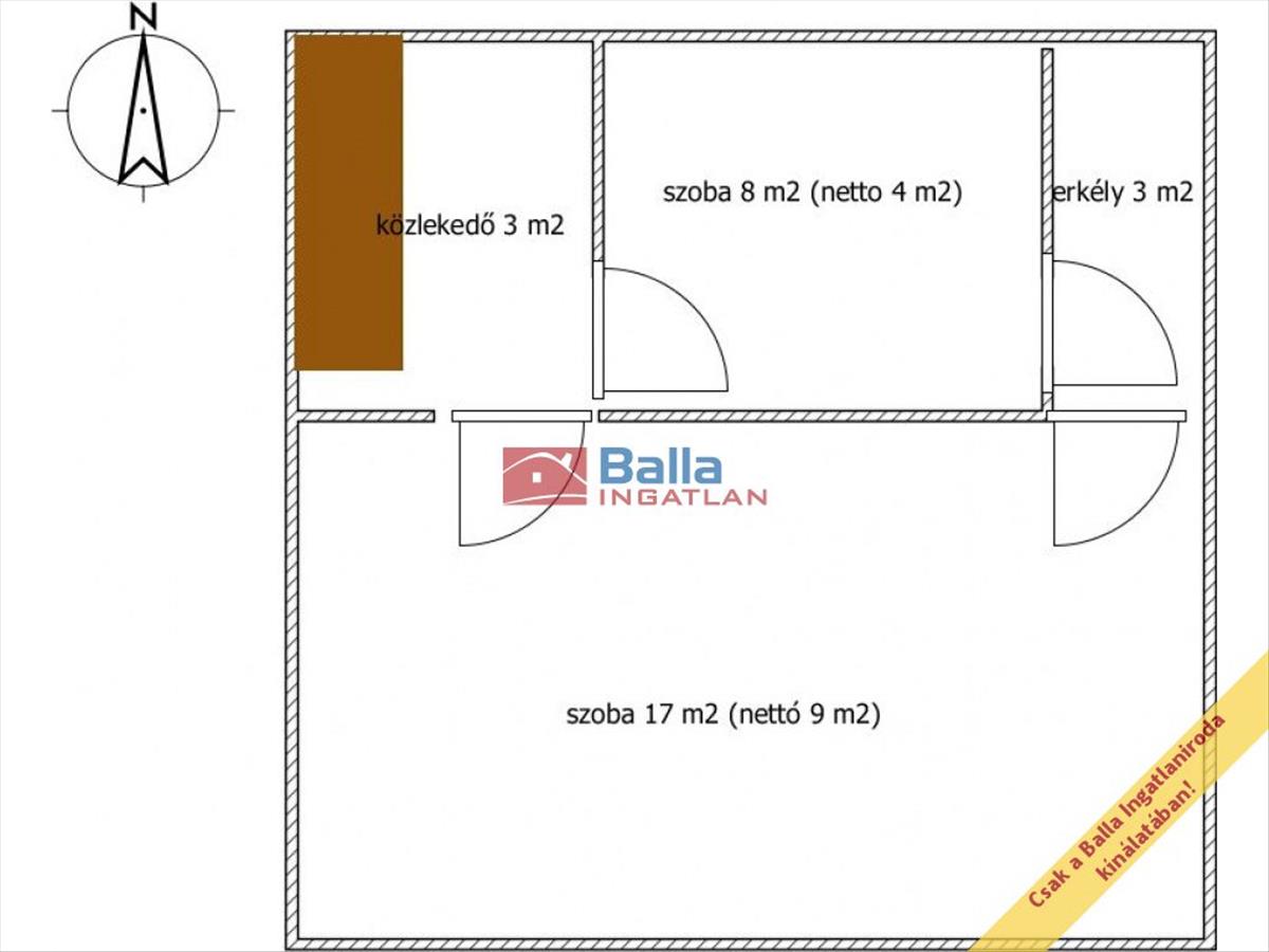 Emelet: 28 m2 bruttó lakórész (190 cm feletti nettó 15 m2) + 3 m2 erkély.
