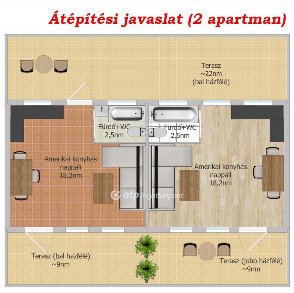 Elöl és hátul is van egy-egy ajtó és terasz, kert is, így el lehet különíteni az élettereket.