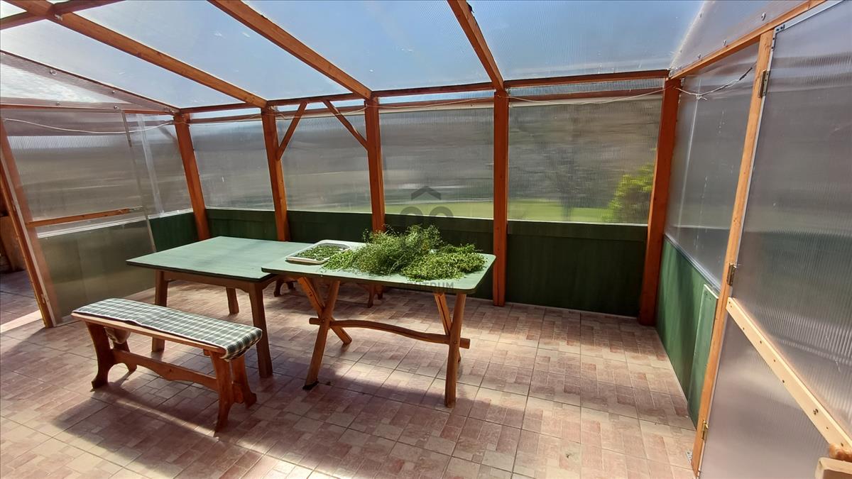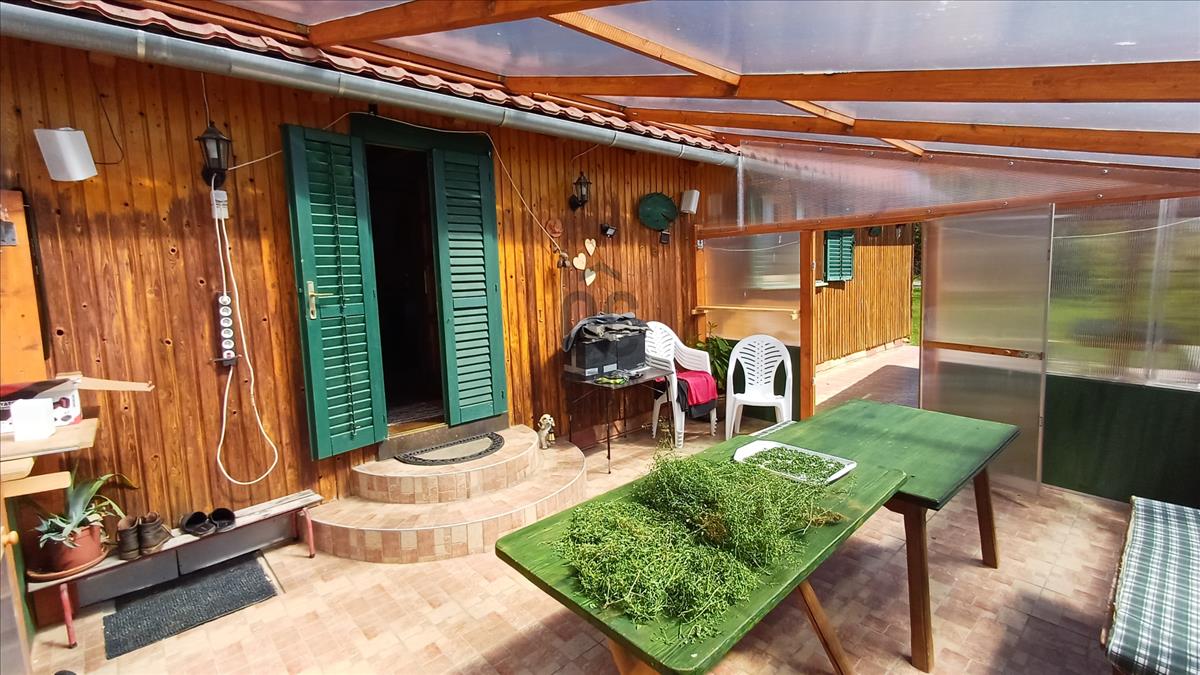 - a 2007-ben készült, 50 m2 alapterületű házikó könnyűszerkezetes, szendvicspanel, kiváló hőszigetelésű, rendszeresen karbantartott. Helyiségei: kamra, fürdő, toalett és egy 45 m2-es egyterű konyha/nappali, szekrénysorral szeparált hálórésszel. a ház belső tere mindkét rövidebb oldalán jól kihasználható galériával növeli az alapterületet. Fűtése tökéletesen megoldott egy Szieszta gázkályhával, ami télen is elegendőnek bizonyult. Gázvezeték az utcában, igény szerint beköthető.