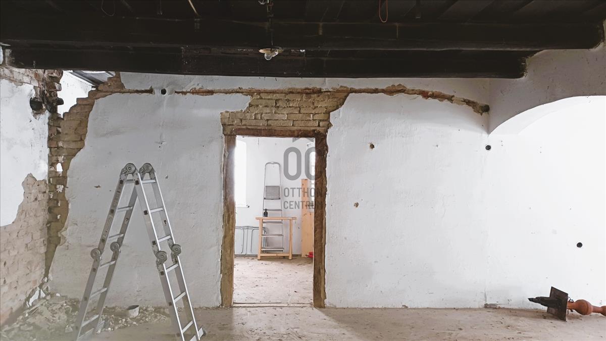 - a renováláshoz már kiürítették az épületet. a jelenlegi felosztás alapján tervezett helyiségek: szélfogó, közel 30 m2 nagyságú nappali, konyha és fürdőszoba, a tetőtérbe további szoba kerülhet. ( Alaprajz a képek között) Az elkészült részletes tervek rendelkezésre állnak.