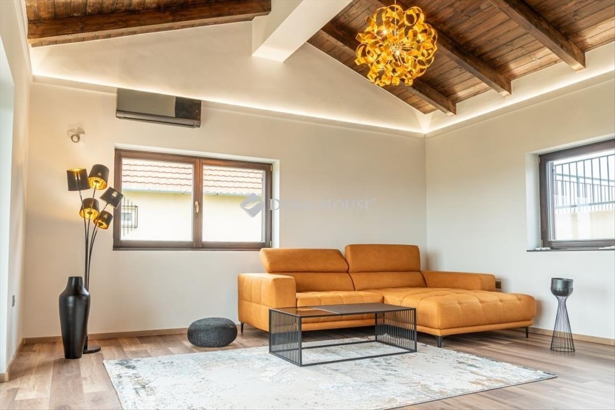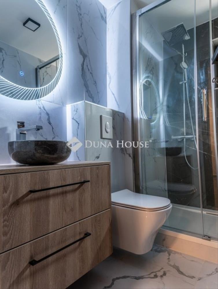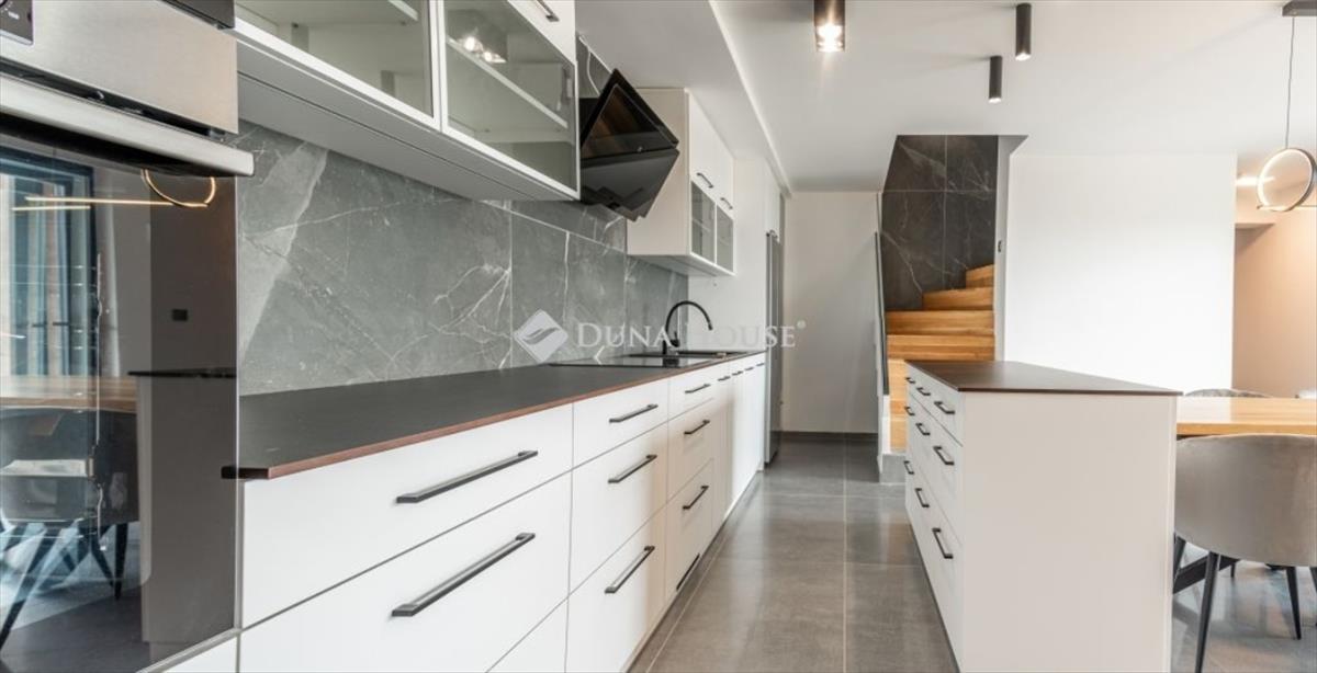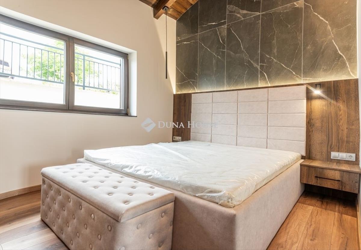 Ez a 2024-ben épült, modern gépészettel és válogatott anyagokkal kivitelezett ingatlan két szinten kínál 197 m² alapterületet: a felső szinten tágas nappali, két hálószoba és egy fürdőszoba/WC, míg az alsó szinten konyha, szivarszoba és mosókonyha kapott helyet. a házat minőségi Süttői mészkő, egyedi fa nyílászárók, valamint hatékony hőszigetelés teszik igazán különlegessé. Kényelmi extrák az elektromos fűtés, led hangulatvilágítás, klímaberendezések és egy hangulatos kandalló biztosítják a kellemes atmoszférát télen-nyáron. a fürdőkben fűtőszőnyeg és törölközőszárítók gondoskodnak a maximális kényelemről.