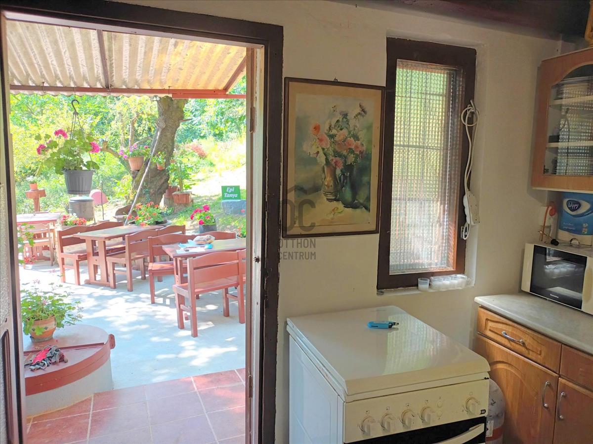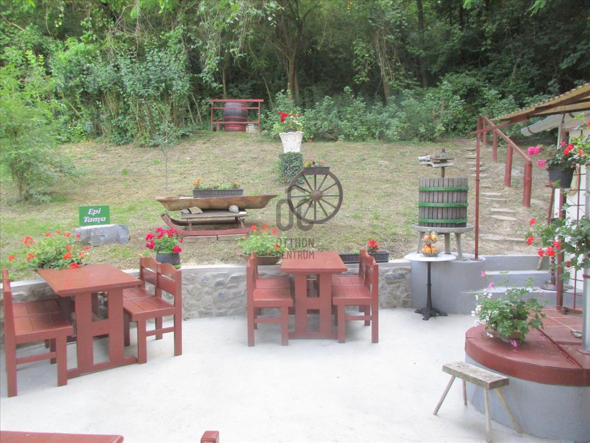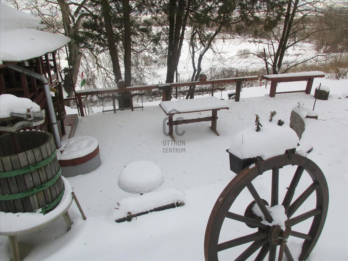 Az elmúlt időkben a házikó felújításra került, új víz- és szennyvízrendszer került kiépítésre, a villamosenergia-hálózat is megújult. Az épületben lent egy 12, 59 nm-es borospincét találunk, a fenti részen 7, 68 nm-es konyhát, 1, 46 nm-es Wc-kézmosó helyiséget, 11, 69 nm-es szobát, 2, 7 nm-es tusolót, illetve a ház előtt a birtok legkellemesebb részét, egy rendkívül praktikus, 60 négyzetméteres, betonozott nyitott teraszt. Mesés panoráma tárul elénk a keleti tájolású területről.