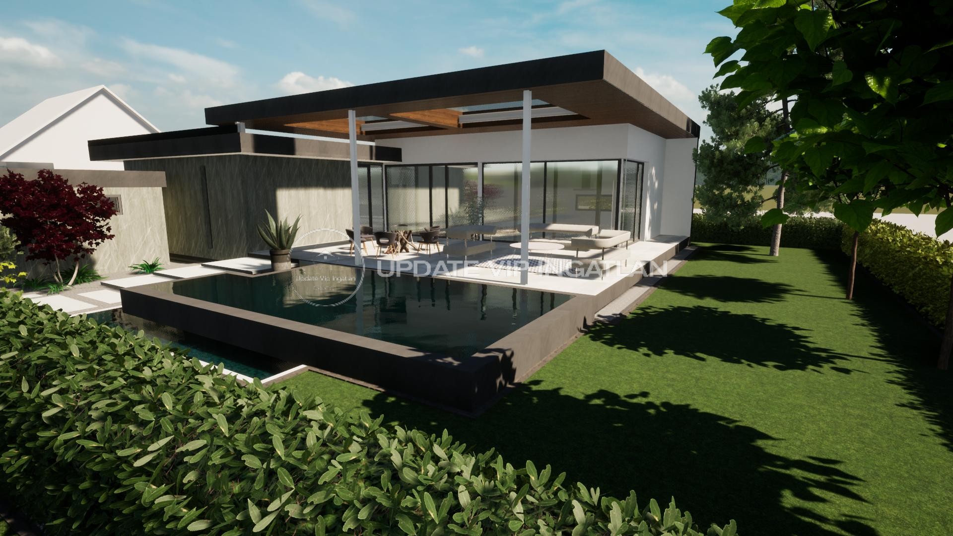 Zamárdi felső csendes, víz közeli utcájában épül ez a minden igényt kielégítő luxus családi ház/nyaraló!