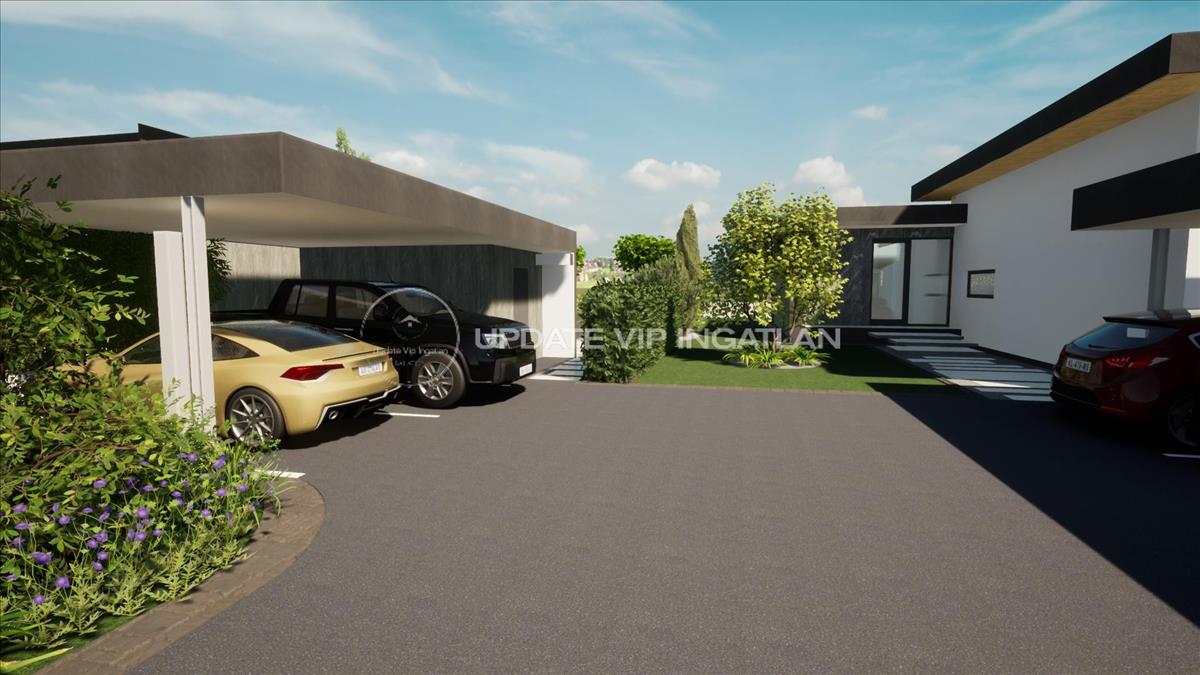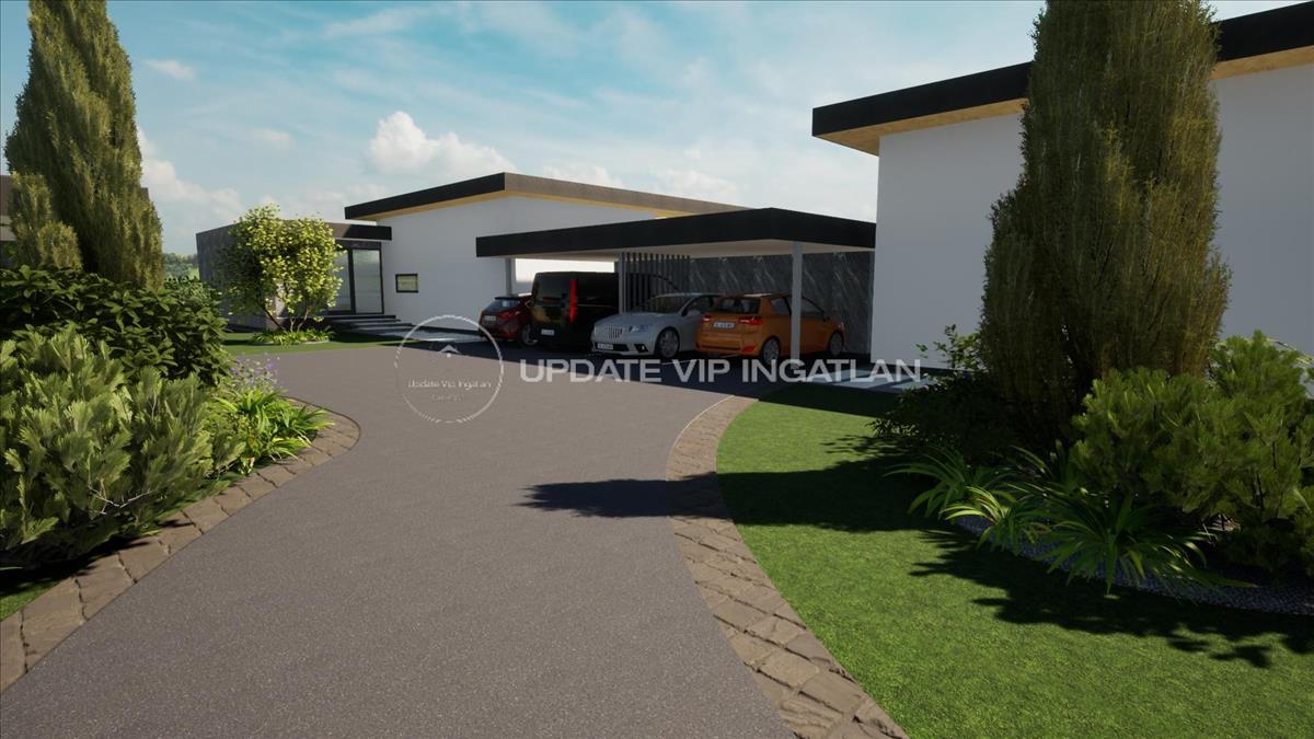 2db fedett kocsibeálló és 12-15m2-es külső tároló