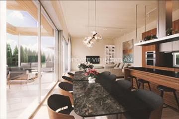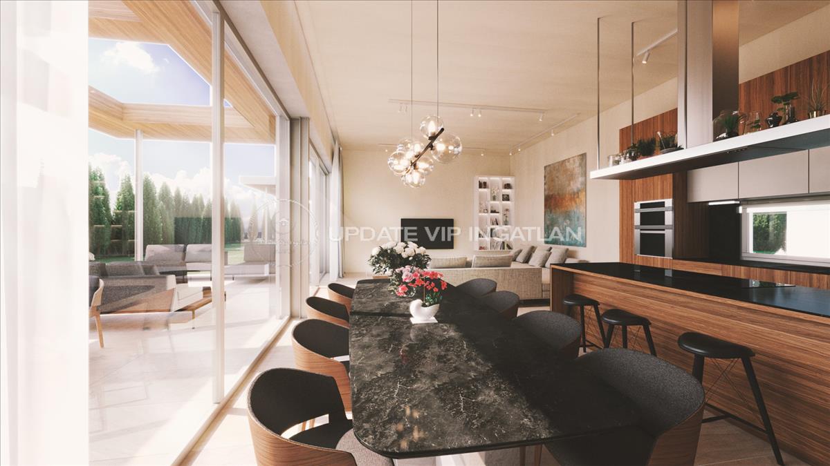 Tágas nappali-konyha-étkező hatalmas üvegfelülettel