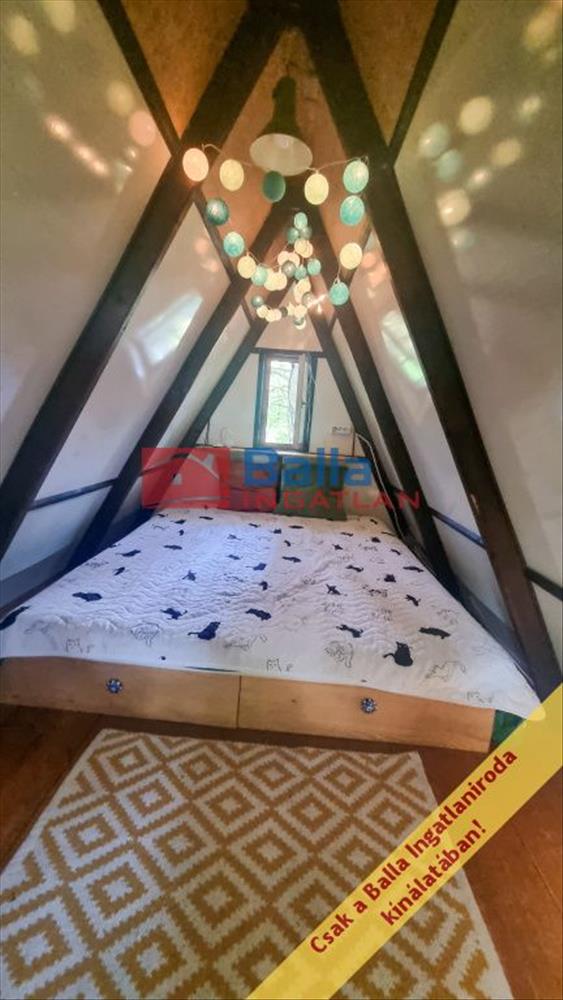 A telken jelenleg egy 10 m²-es, alvó galériás faház áll, amelyben új elektromos hálózat került kiépítésre.
