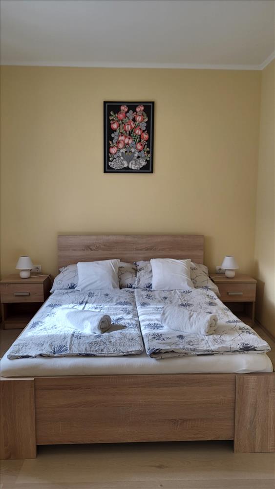 Az emeleten 4 szoba fürdővel 2-3 személy részére, itt az ablakok a Balatonra néznek,