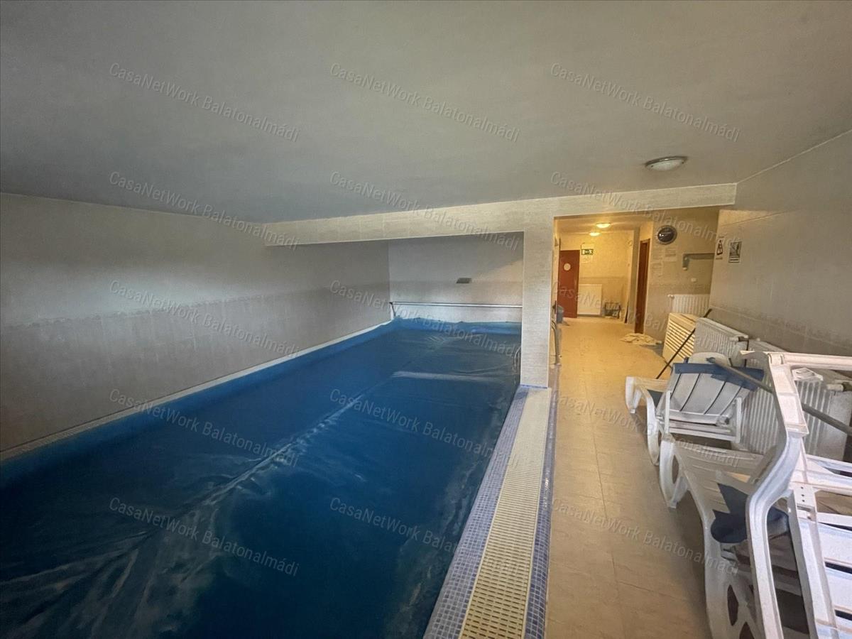 Az ingatlan egyik kiemelkedő különlegessége az alagsorban kialakított wellness részleg. Itt egy nagyméretű beltéri úszómedence kapott helyet, amelyhez szauna, pihenőtér, valamint egy külön kialakított edzőterem is tartozik. Ez a komplex wellness rész kiváló lehetőséget biztosít arra, hogy a jövőbeni tulajdonos prémium szolgáltatásokat kínáljon vendégeinek, ugyanakkor egy magánhasználatú villa esetében is rendkívüli kényelmet és exkluzív életérzést biztosít.
