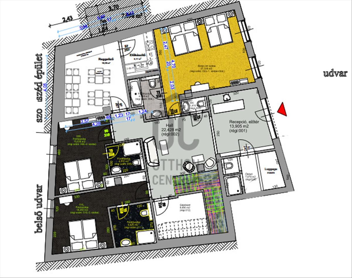 Stabil folyamatos bevétel. Bővítési lehetőség, a hotel épület két további emelet ráépítésével, valamint az utcafronti épület lakásainak megvásárlásával (8 db) komoly bővítés érhető el.