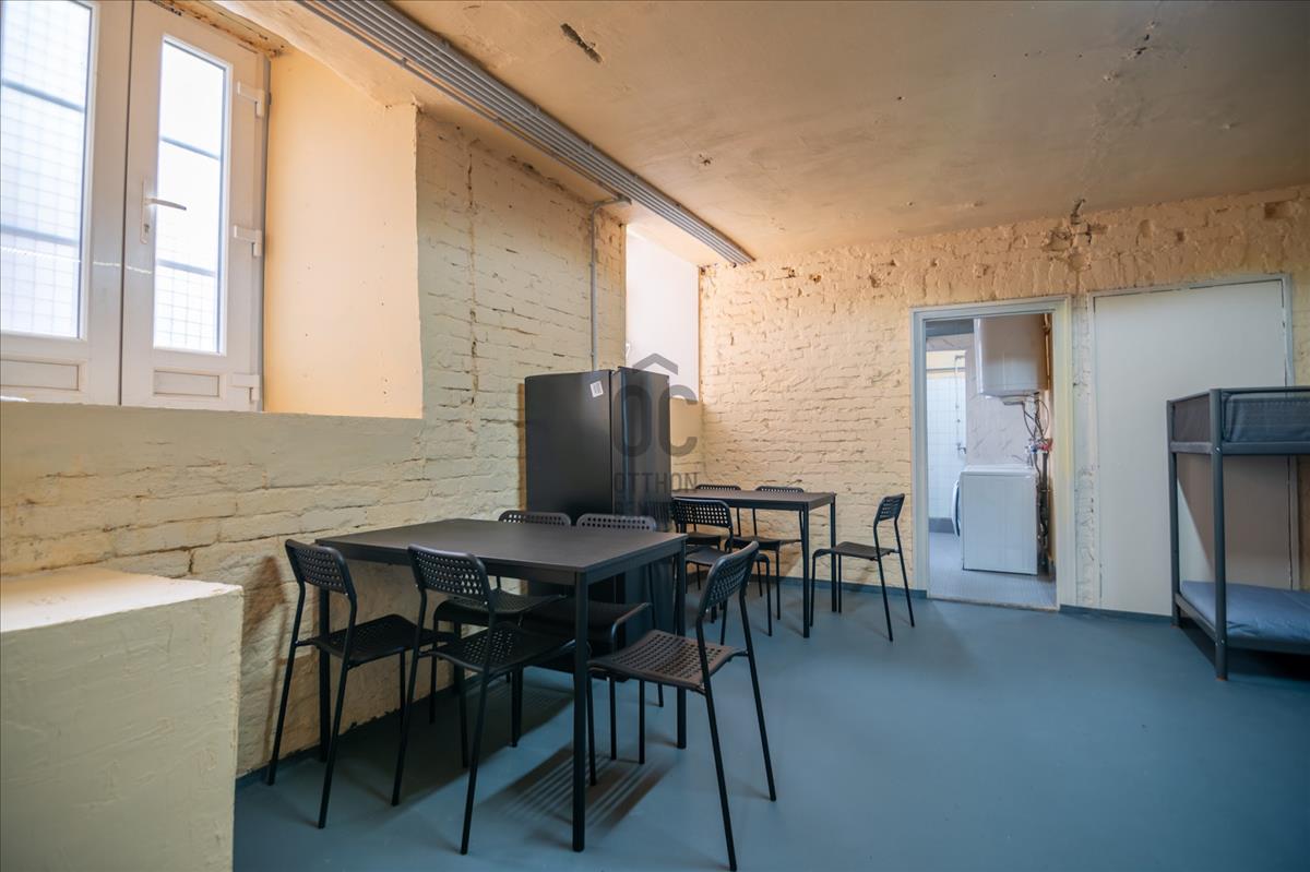 Tágas helyiség téglaházban, teljesen készen áll a lakhatásra, kereskedelmi célokra is használható. Tökéletes iroda, hostel, műhely vagy kombinált „iroda + lakás” megoldás számára.