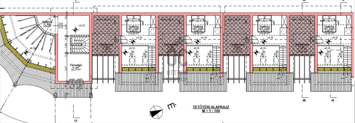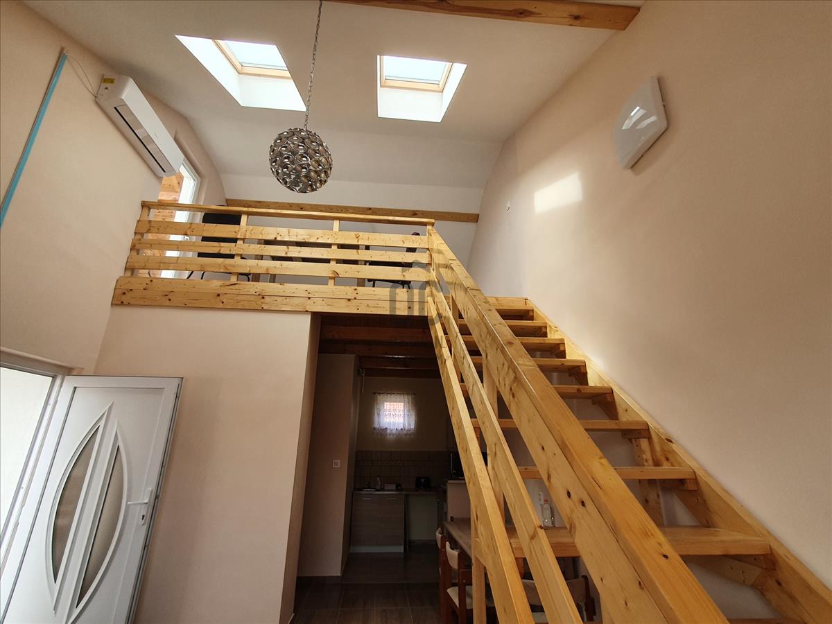 A 4 apartman azonos méretű, magába foglal egy földszinti teraszt, nappalit, fürdő-wc-t, konyha-étkezőt, hálószobát illetve a galérián található hálót és teraszt.