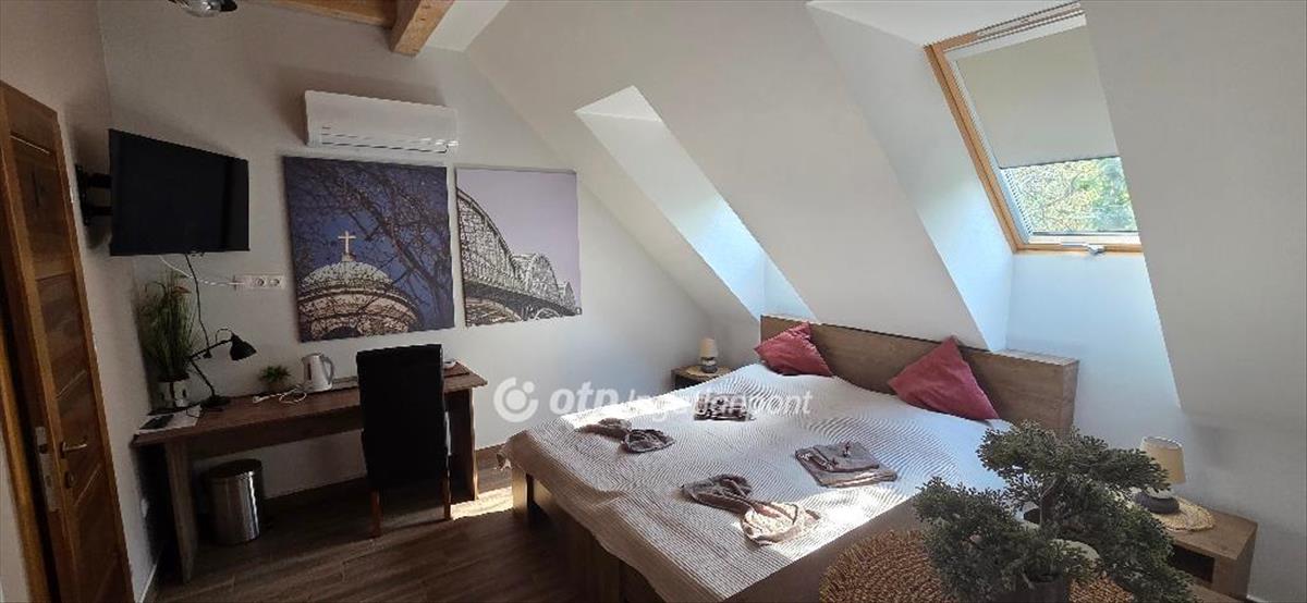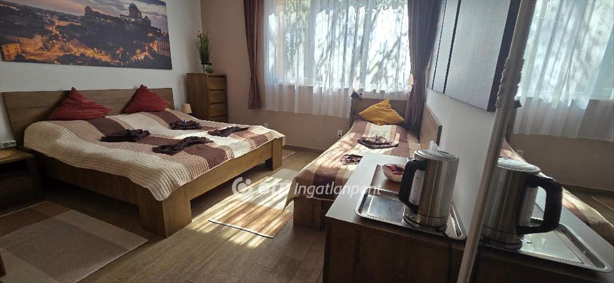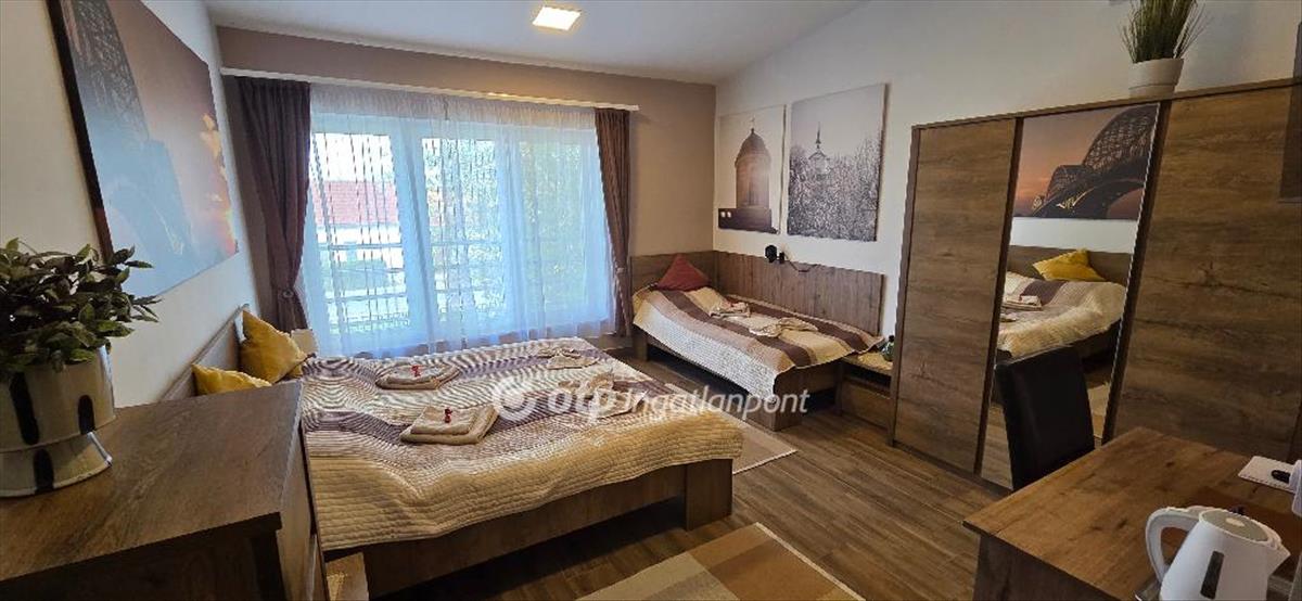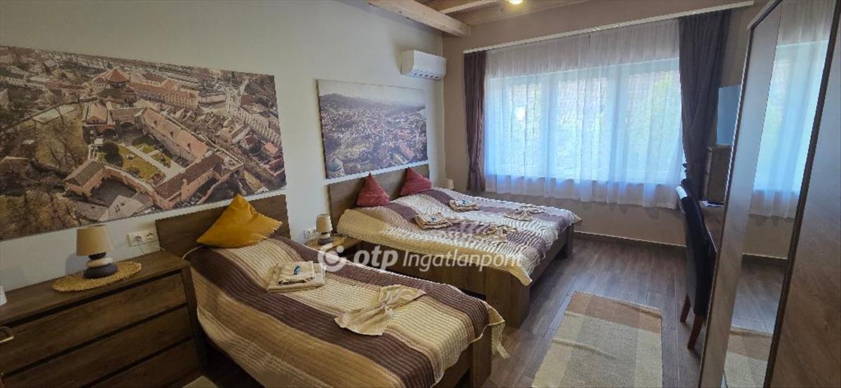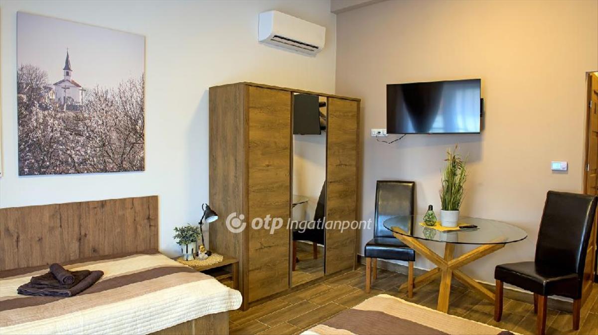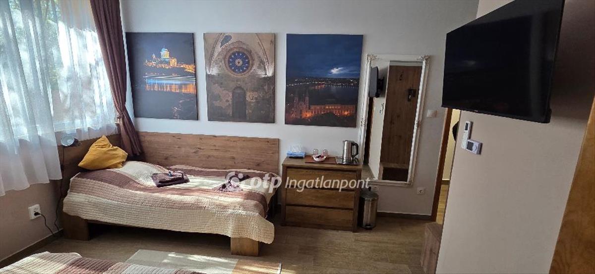 Esztergomban, az ország egyik leghangulatosabb városában egy újépítésű, azonnal működtethető, 15 szobás, 42 ágyas, 418 nm hasznos alapterületű (földszint: 212 nm, emelet: 206 nm), két szintes szállásépület várja befektetők jelentkezését. Az ingatlan 794 nm-es telken helyezkedik el, a város központi, mégis nyugodt részén, pár perc sétára a Duna-parttól. Az ár tartalmazza a teljes berendezést is. Rendelkezik minden szükséges hatósági engedéllyel. a szobákon kívül megtalálhatóak a működtetéshez szükséges közösségi és kiszolgáló helyiségek: étkező, teakonyha, társalgó, takarítószertárolók, gépészeti helyiségA fűtés kondenzációs gázkazán + padlófűtés; minden szobában inverteres klíma, szellőzés: