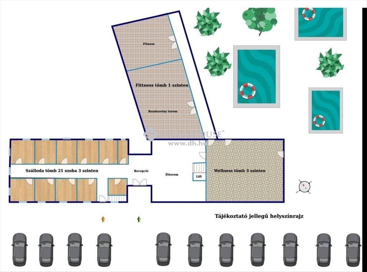 Üzemelő Wellness szálloda eladó. Épület: 2155 nm nettó területbruttó szintterület: földszint 883nm, 1. emelet 723nm, 2. emelet 293nm, egyéb 256nmTelek: 6443 nm Tulajdonos 1/1 Egyéb hasznosítási lehetőségek! - Magánkórház járó- és fekvőbeteg ellátással- egészségügyi rehabilitációs központ- cég üdülő és rekreációs központ- rendezvényközpontHelyiségkiosztás: - Szálloda :21 szoba 3 szinten, többnyire akadálymentes megközelítésselrecepció, étterem, kávézó rész, terasszal a szálloda parkjában- Wellness Fűtött úszó medence, ellenáramoltatóval, élményelemekkel, fénytechnikávalSúlyfürdő medence, kültéri medencék, gyermekmedence élményelemekkelfinn szaunák, gőzkabin, infraszaunák, zuhanyzók, masszázs részleg, orvosi szoba. - Fittness edzőterem teljesen gépesítve, felszerelésselaerobic és spinning terem dupla bowling pálya külön bár helyiséggel, saját hangtechnikávaldupla squash pálya, amely hivatalos verseny megrendezésre is alkalmasrendezvényterem külön hangtechnikávalgyermek játszó részleg Helen Doron angol nyelvoktatássalEnergetikai műszaki adatok:- a fűtést 21 db geotermikus talajszonda biztosítja + 2db tartalék gázkazán - mennyezeti hűtés fűtés + padlófűtés a fittness részlegben- a szállodarészlegben radiátoros hőleadókkal- klímatizált terek- Napelem rendszer 50 kWh teljesítménnyel - Napkollektor rendszer a medencék fűtéséhez- saját transzformátor állomás60 férőhelyes parkolási lehetőség a szálloda saját felszíni parkolójábanSzépen parkosított környezet. Bővebb, részletes információkért keressen kérem elérhetőségeimen.