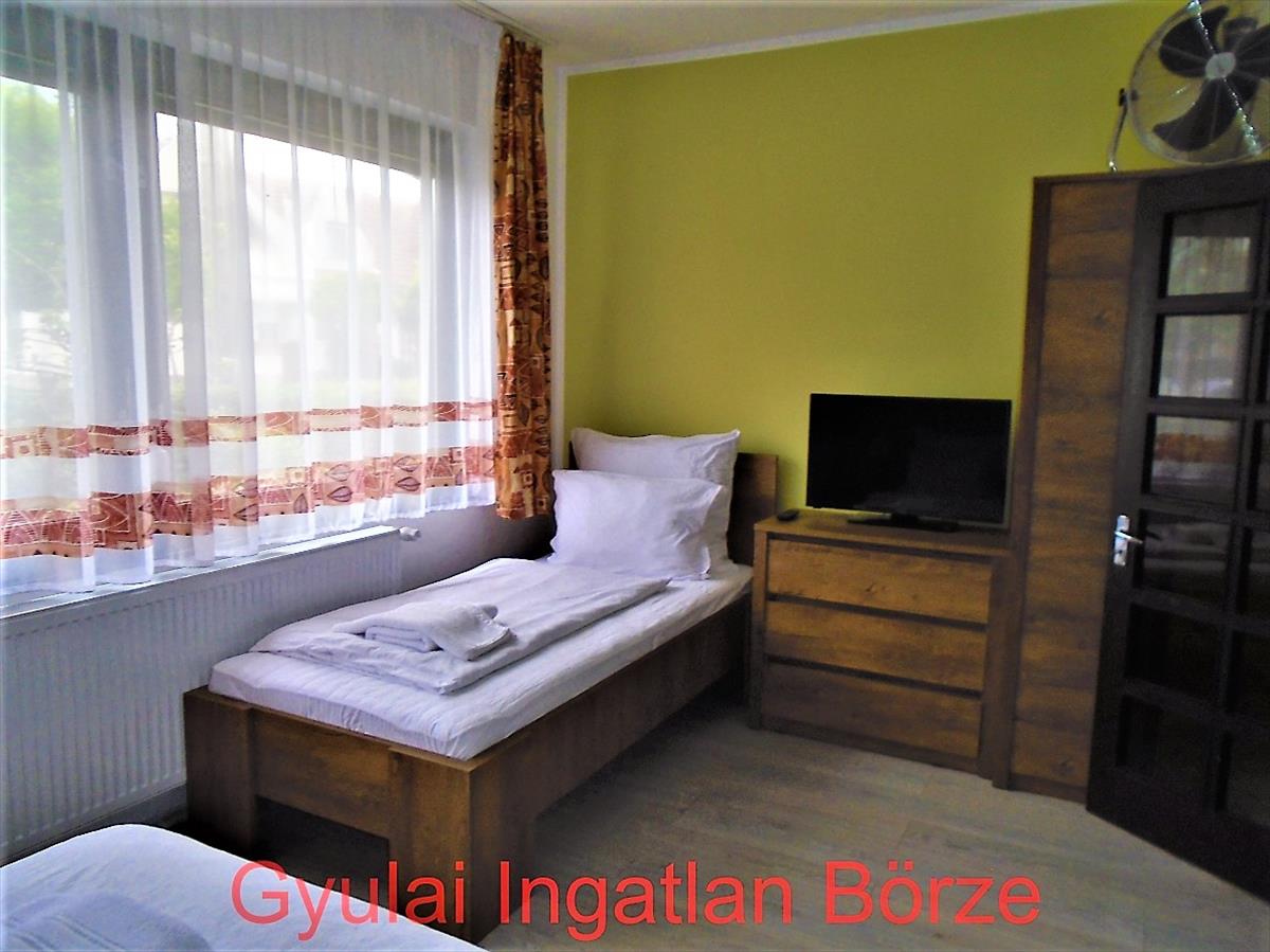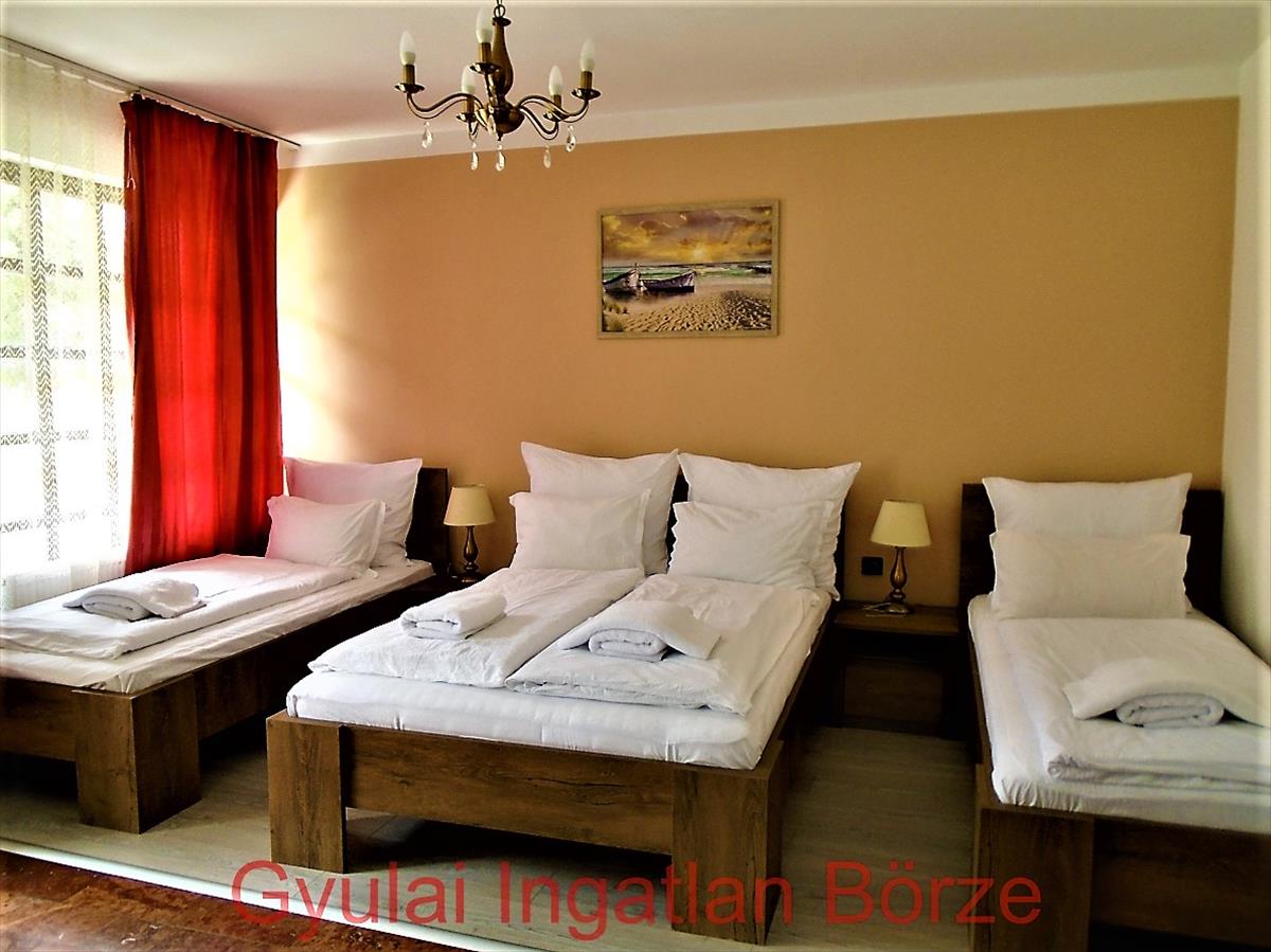 Gyula belvárosában - Nagyrománvároson, a Gyulai Vár közelében, frekventált helyen, zöldövezetben, jó állapotú 9 szobás - 6 apartmant kínálok eladásra, mely tégla falazatú, 260 m2 alapterületű társas üdülő - apartman, telek mérete: 615 m2.Az apartmanban van: 4 db. 1 Szobás, 1 db. 2 Szobás és 1 db. 3 Szobás külön bejáratú lakrész, mindegyik saját konyhával és fürdővel rendelkezik.