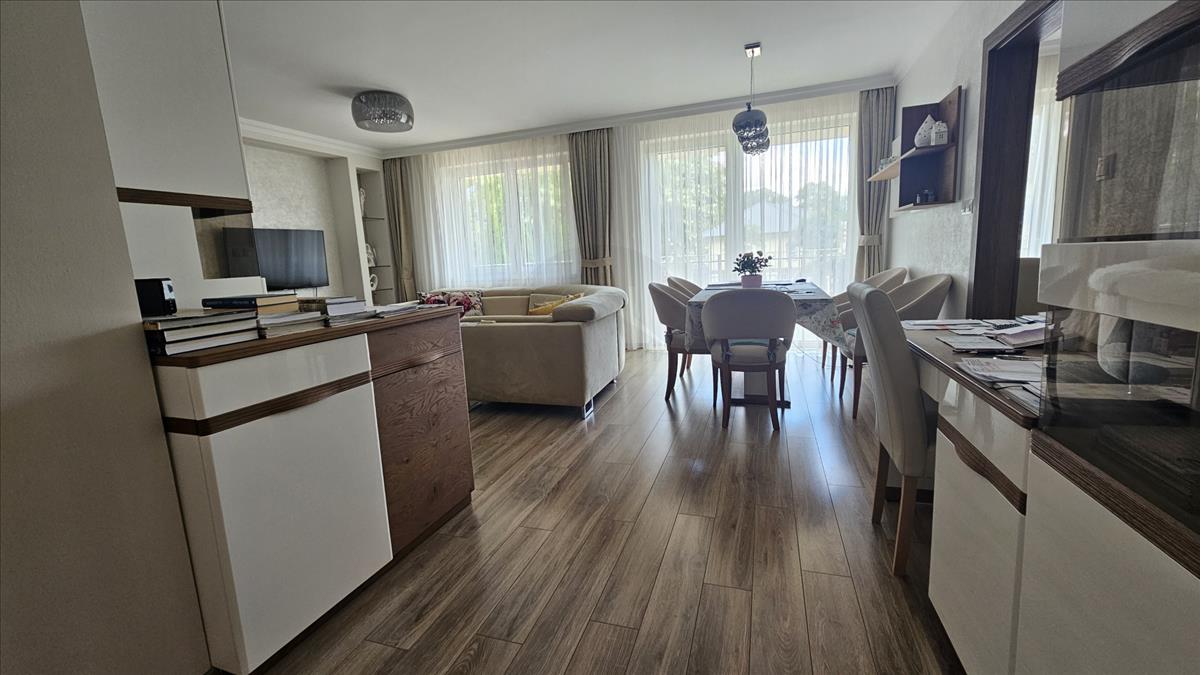 Tulajdonosi lakrész: kb. 100 M²-es, 2 szobával, amerikai konyhás nappalival, kamrával, fürdőszobával (kád és zuhany is), külön WC-vel