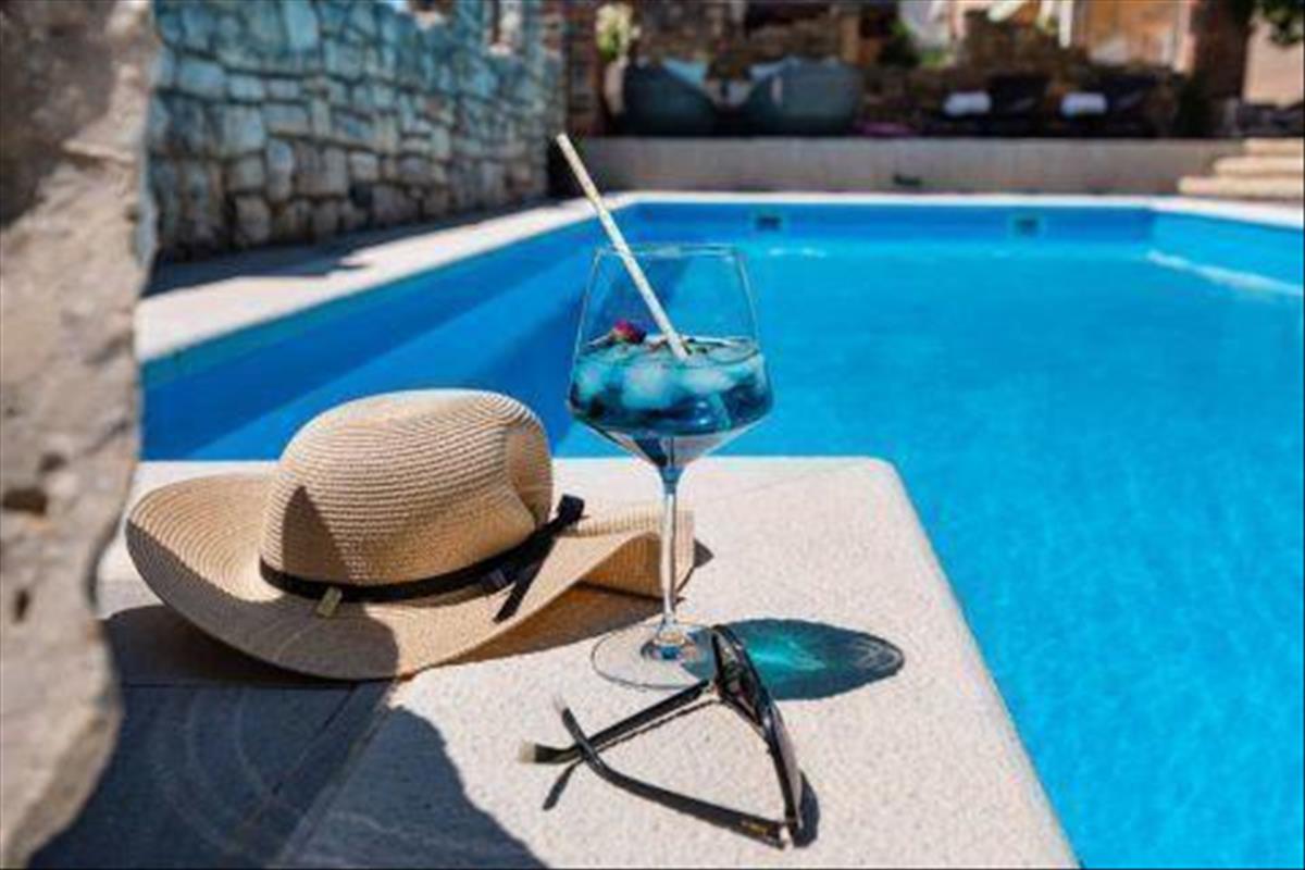 Az úszómedencés ingatlan mellett egy gyönyörű kavicsos strand és kristálytiszta tenger található. Igazán egyedi helyszín!