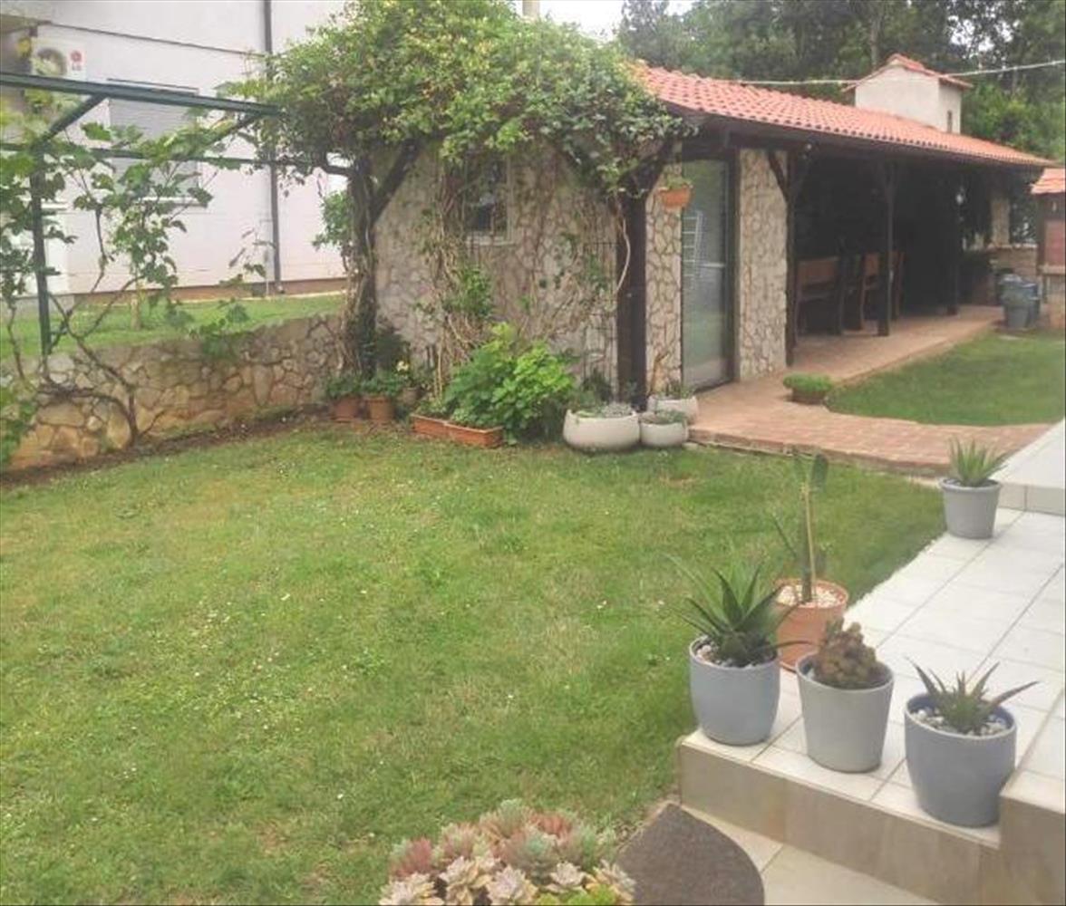 A telek, amelyen a ház található, 596 m2. Zöldség mindenhol.