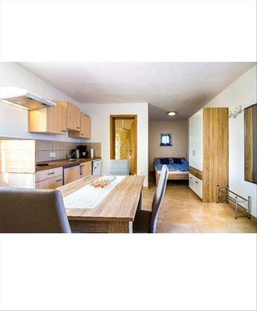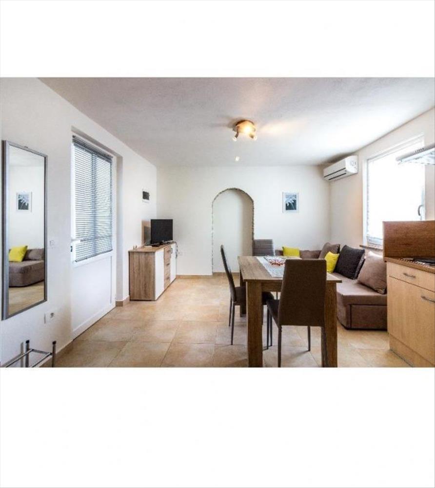 A földszinten egy két hálószobás apartman és egy garzonlakás található.