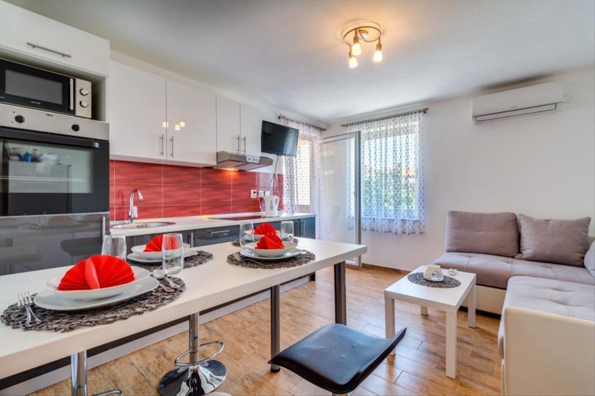 Apartmanház medencével és parkosított kerttel, kb. 1, 5 Km-re a tengertől Pula környékén, a Busoler kerületben. Pula városának csendes részén, egy zsákutcában, a főúttól mindössze 250 m-re található ez a tágas apartmanház medencével és parkosított kerttel. Az ingatlan 3 szintes: a földszint 160, 92 m2, az emelet 128, 32 m2 és a magas tetőtér 124, 46 m2 alapterületű. a földszinten található egy bútorozott és felszerelt családi apartman két hálószobával és egy apartman egy hálószobával. Az első emeleten három felújított, teljesen felszerelt és bútorozott apartman található, amelyek turisztikai bérbeadásnak minősülnek. Az egyik stúdióapartman, a másik két apartman egy konyhából, nappaliból és étkezőből, egy hálószobából, egy fürdőszobából és egy teraszból áll. a tetőtér jelenleg magas roh-bau fázisban van, két külön bejáratú lakás kialakítására van lehetőség. Van egy 32 nm-es medence. Bekerített és parkosított kertben, melyben fűtött medence, napelemes zuhanyzó, grillezési lehetőség és 7 gépjármű parkolóhely van. a házhoz tartozik még egy kb. 40 m2 2 autónak, mely bútorozatlan, pince kb. 25 m2-es, mely szintén bútorozatlan.Az ingatlan 2008-ban épült. Ez az ingatlan rendkívül érdekes a családi élet lehetősége miatt, plusz bevételi forrással, vagy csak befektetésként az idegenforgalmi bérbeadásba. Csendes környéken, de a körgyűrű közelében található, mindössze 1, 5 km-re a városközponttól és ugyanilyen távolságra a tengertől és a strandoktól. a buszmegálló pár perc sétával elérhető. Távolság az autópályától: 6 km Távolság a repülőtértől: 9 km Ref: RE-U-22312