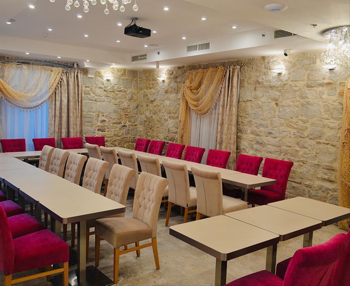 A szálloda többfunkciós konferenciateremmel is rendelkezik, amely különféle üzleti találkozók és családi összejövetelek lebonyolítására alkalmas, maximum 35 fő befogadására alkalmas. a tér 2, 5 méter széles projektorral, számítógéppel, mikrofonos hangosítással rendelkezik.