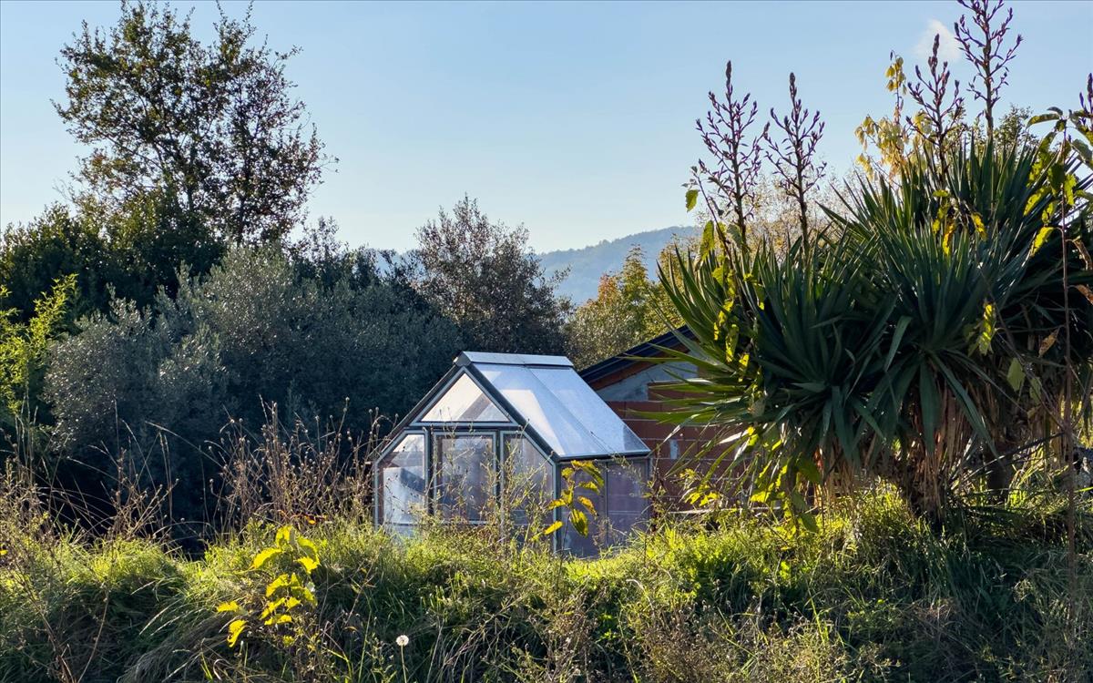 Kisegítő épületek: kerti ház és két üvegház.
