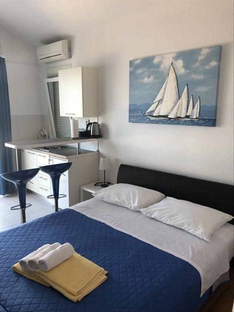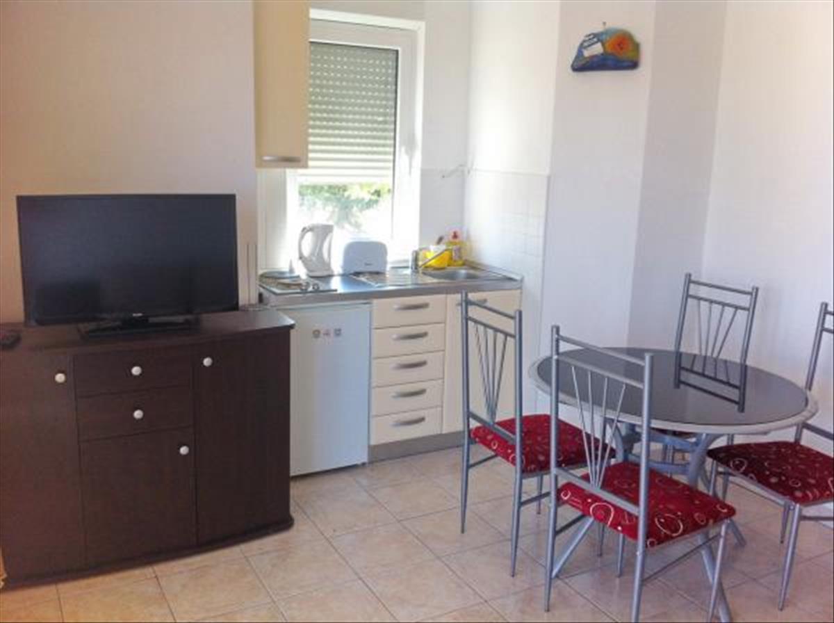Ez az apartman stílusú ház 4 bérelhető apartmannal egy békés öbölben található Rogoznica közelében, 60 méterre a tengertől. a ház négy apartmanból áll: két egy hálószobás apartman, egy két hálószobás apartman és egy stúdió. Az első emeleten garázs található.
