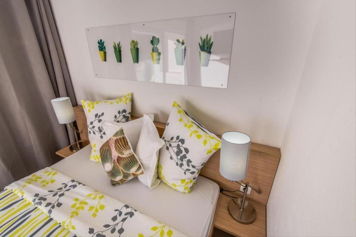 Minden apartmanhoz kis saját erkély tartozik, és a legtöbb apartmanból tökéletes, közvetlen kilátás nyílik a tengerre, a városra és a környékre.