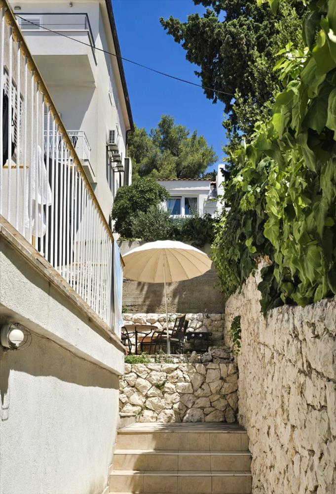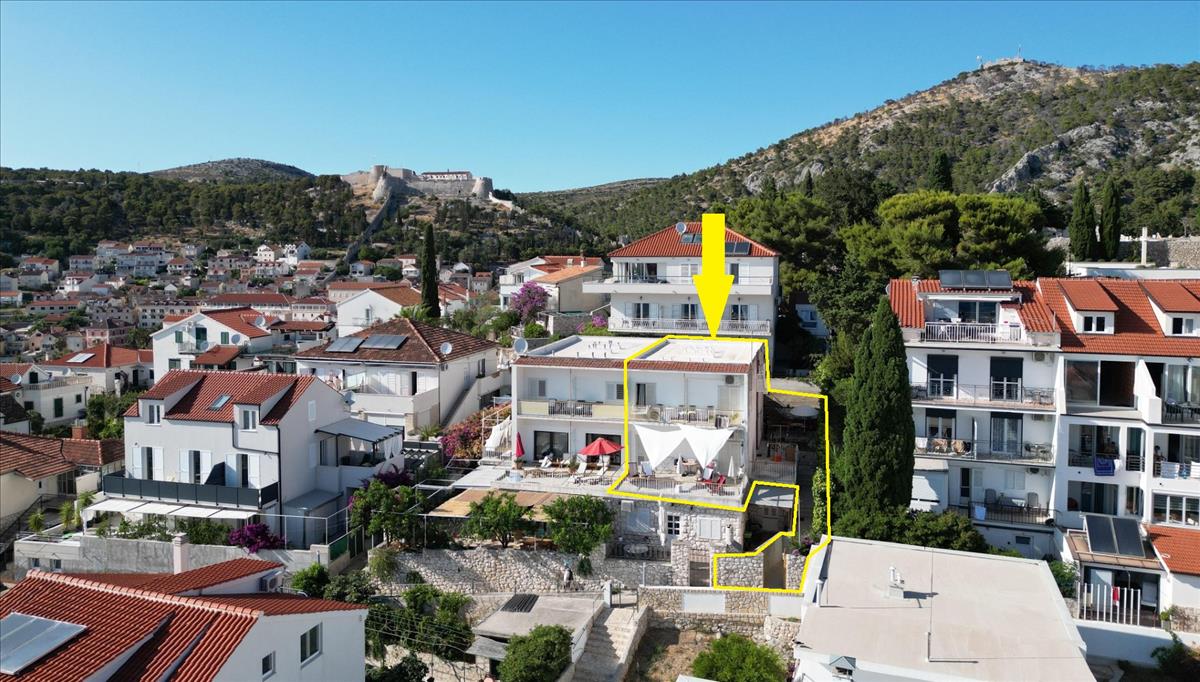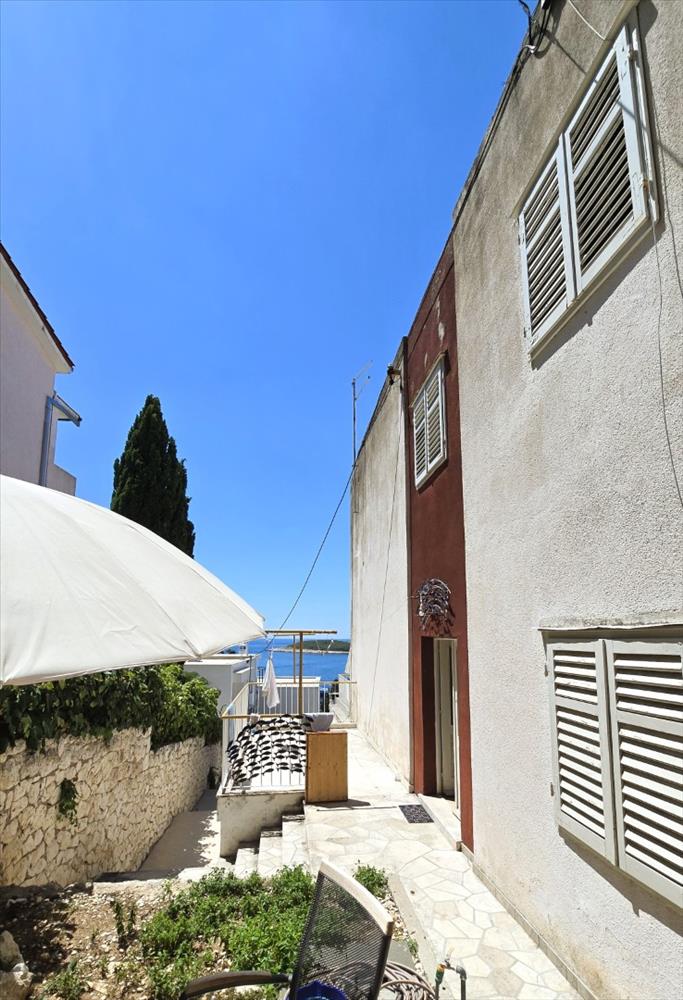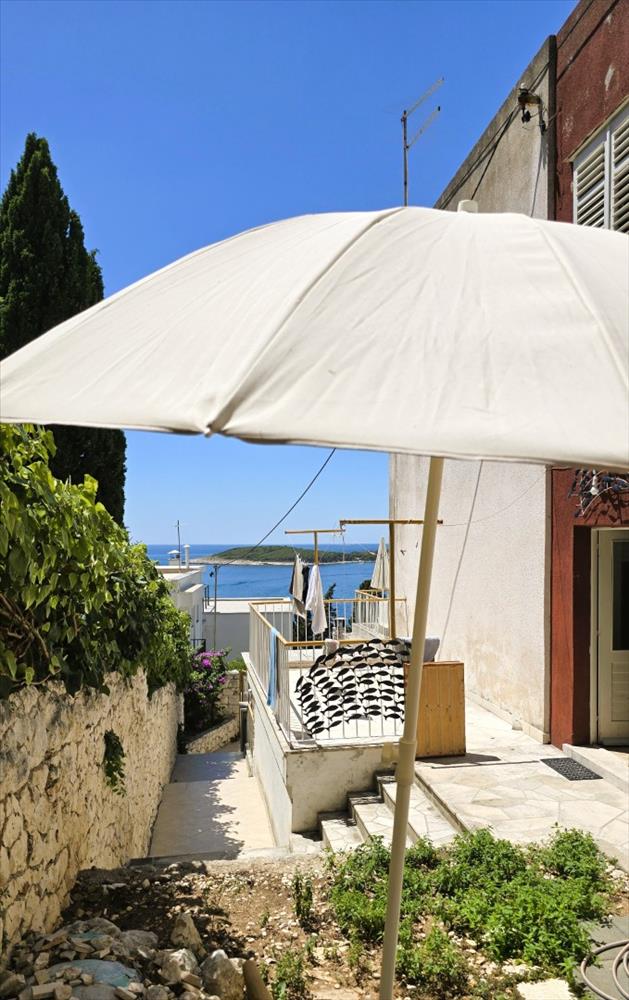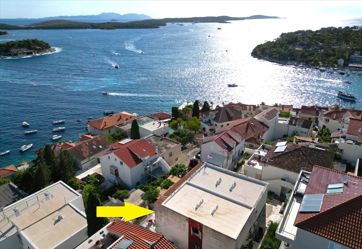 Turisztikai ingatlan tengerre néző kilátással Hvar központjában - abszolút egyedi! Eladó: két szint egy ikerházban, Hvar város szívében, mindössze 90 méterre a tengertől.