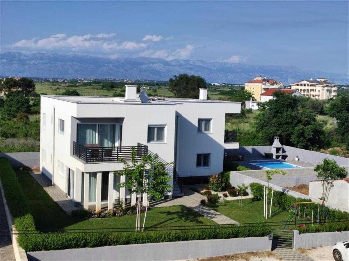 Gyönyörű, modern berendezésű villa 4 apartmanból a népszerű Zaton üdülőhelyen, 15 km-re Zadartól.Kiváló helyen fekszik, 400 m-re a legközelebbi strandtól, kristálytiszta tengerrel.