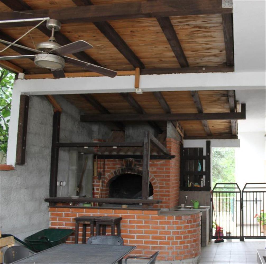 A kertben egy tégla kandalló is található grillezővel és minibárral, amely lehetőséget kínál a hagyományos ételek és italok elfogyasztására.