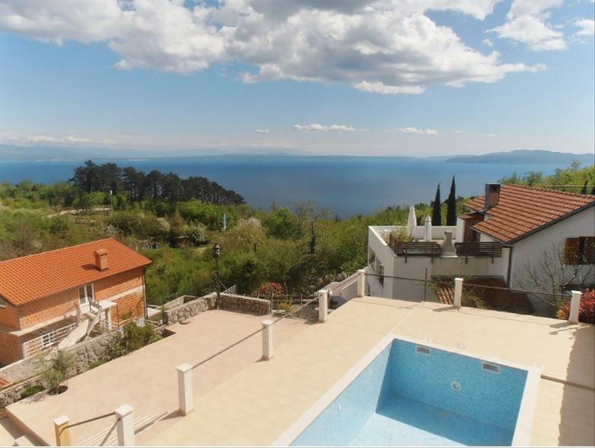 Gyönyörű butik stílusú panzió úszómedencével és lélegzetelállító kilátással a tengerre Veprinacban Opatija felett, az Ucka Nemzeti Park bejáratánál!