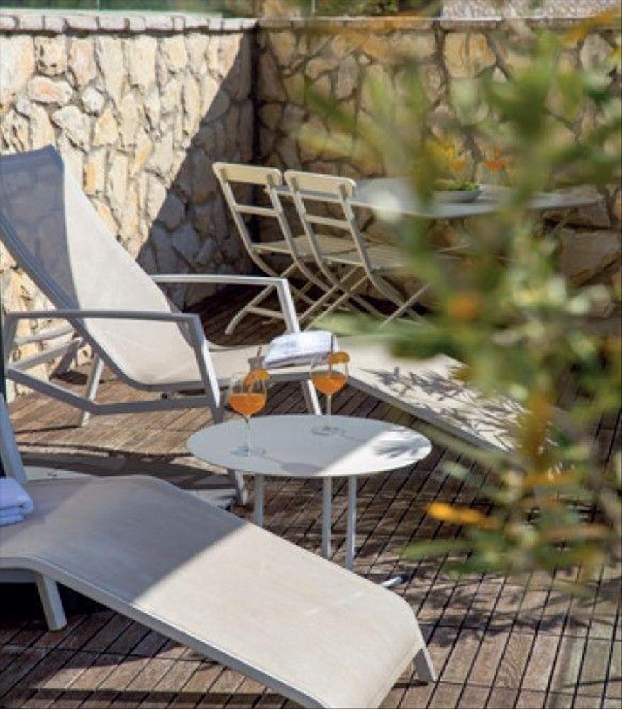 Minden apartmanhoz tartozik egy nagy terasz, egy belső kabin a medencéhez, valamint egy parkolóhely az épület főbejárata előtti telken.
