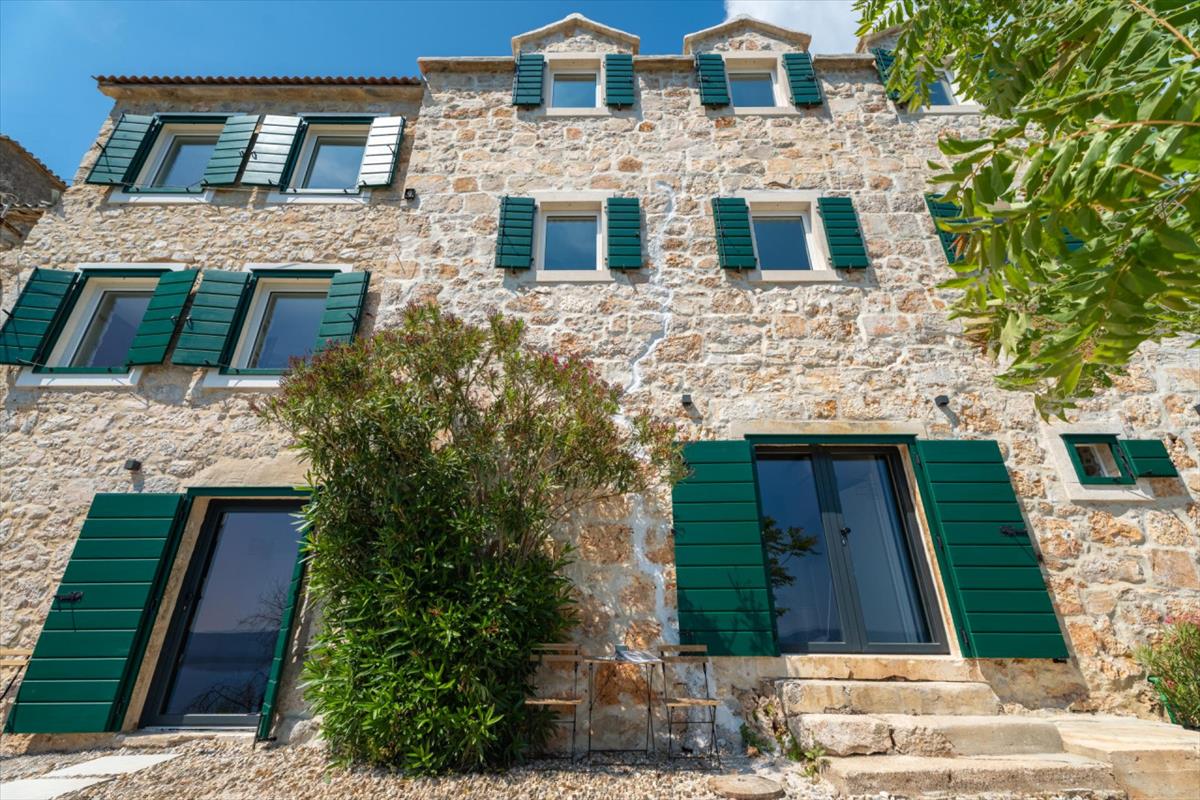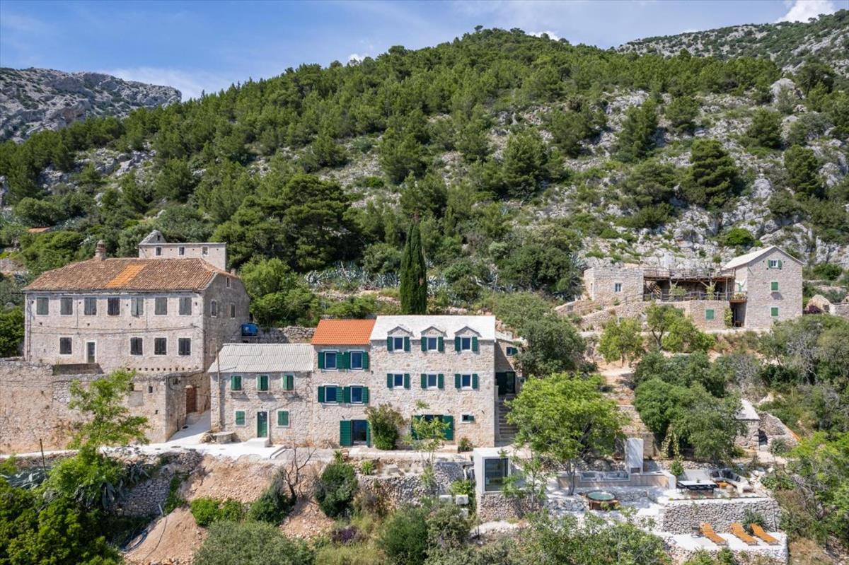 A festői Brač sziget déli oldalán található, nyitott panorámás kilátással Hvar felé, ez a teljesen felújított kőház kilenc apartmannal kivételes ingatlanbefektetési lehetőséget kínál Horvátországban.