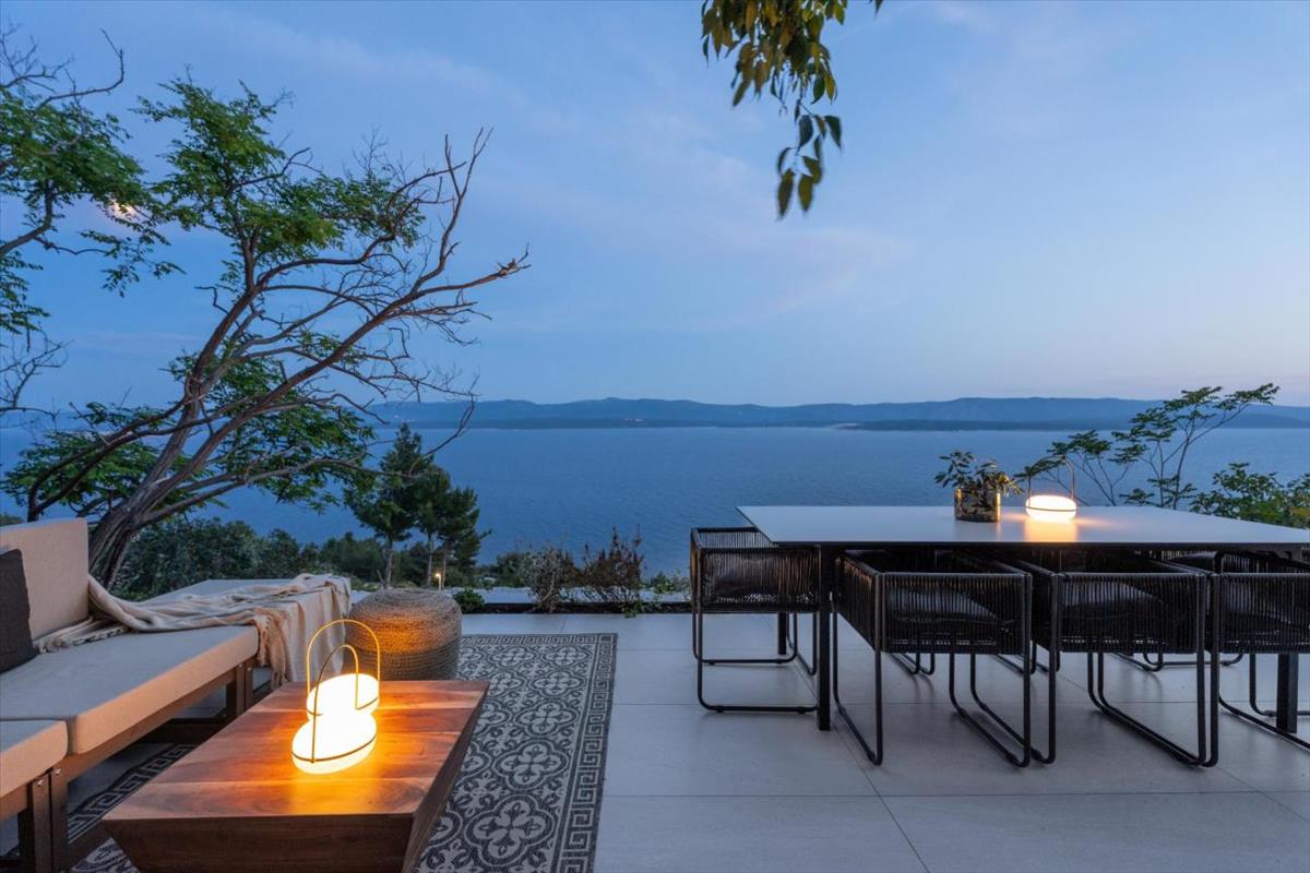 A ház minden szintje lélegzetelállító tengerre néző kilátással és megszakítás nélküli panorámával rendelkezik Hvar felé. a természetes terep konfigurációja biztosítja, hogy ezek a kilátások a jövőben védettek maradjanak, megőrizve a hosszú távú ingatlanértéket.