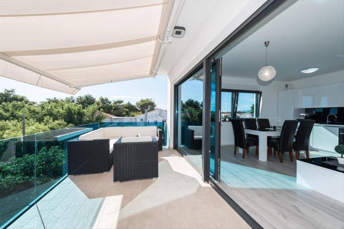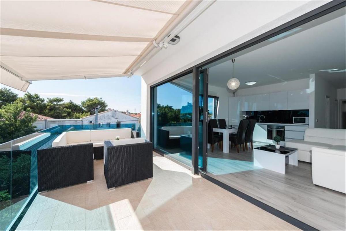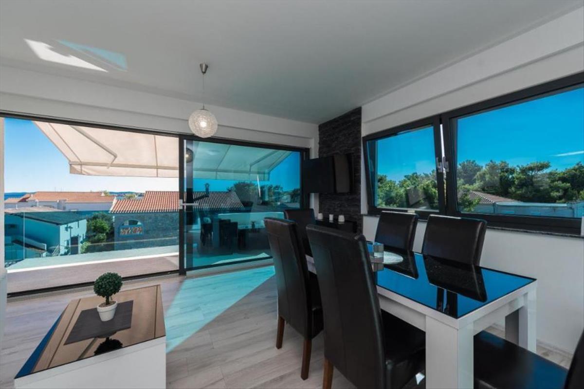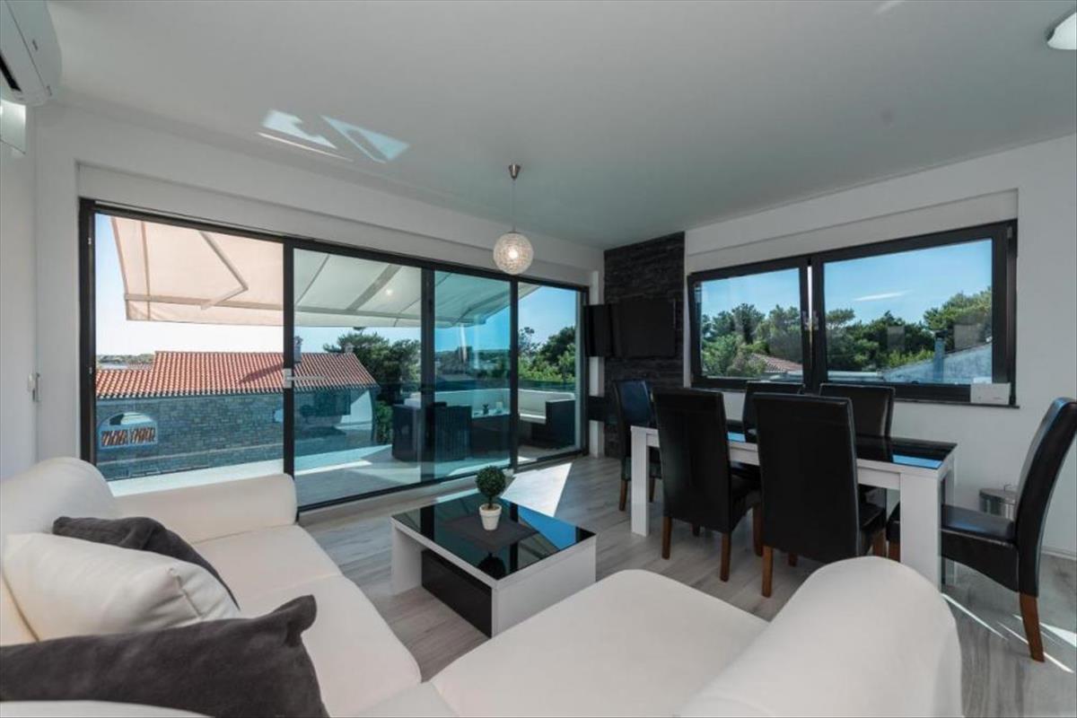 A teraszról lélegzetelállító kilátás nyílik az egész zadari szigetvilágra, az Adriai-tengerre, a naplementére és a Velebit-hegyre.