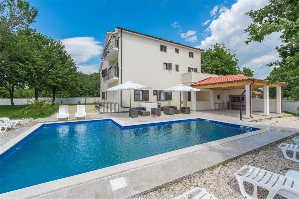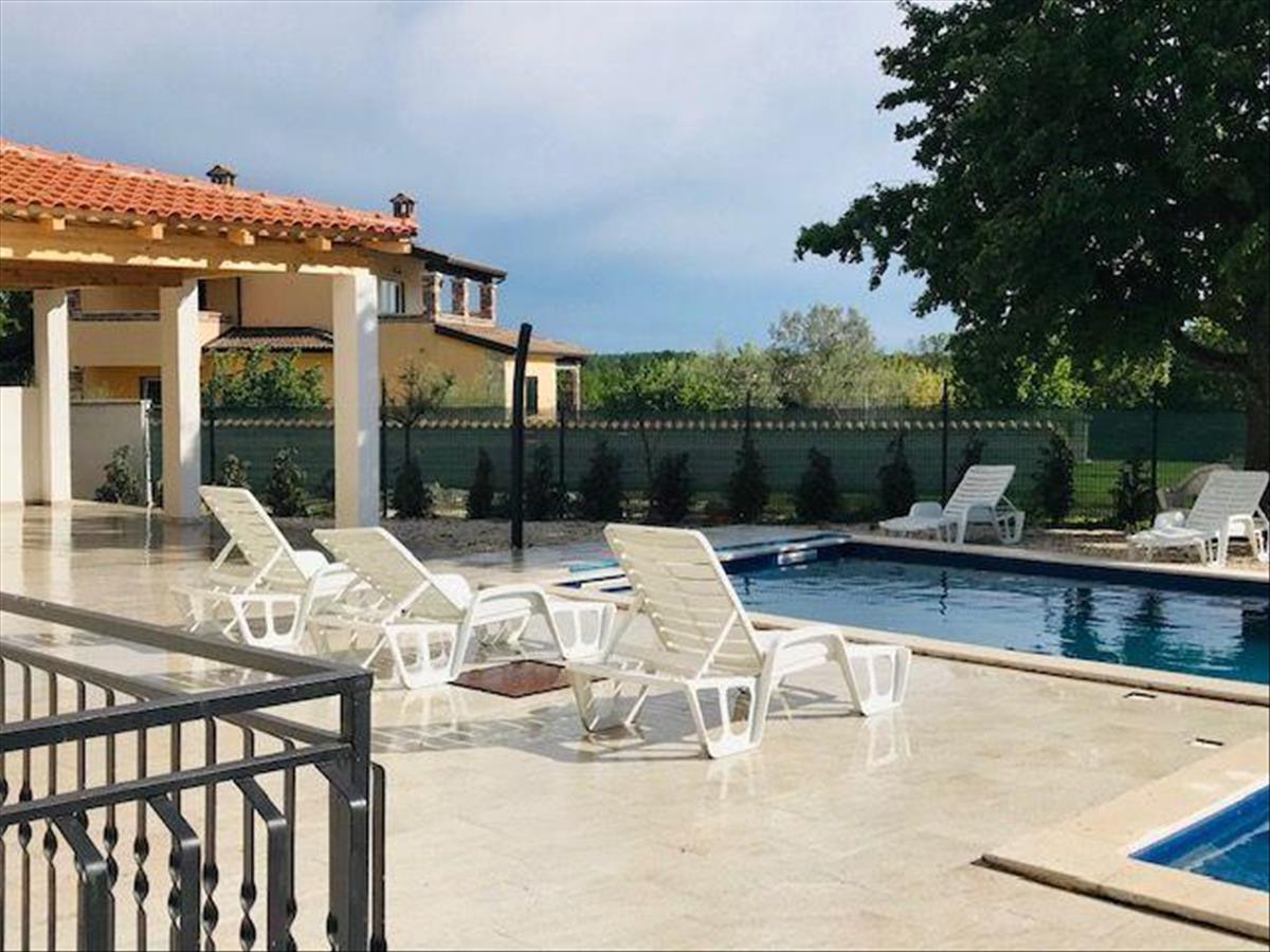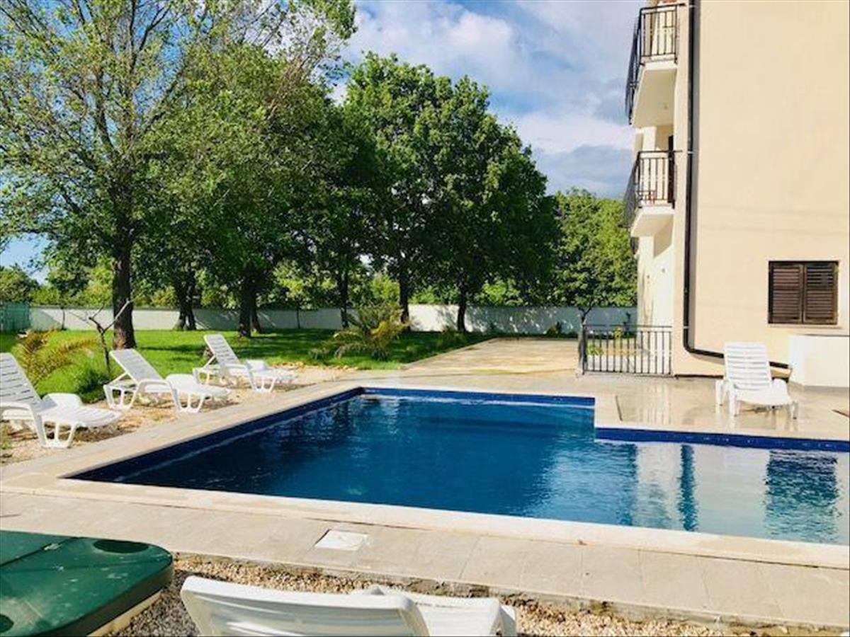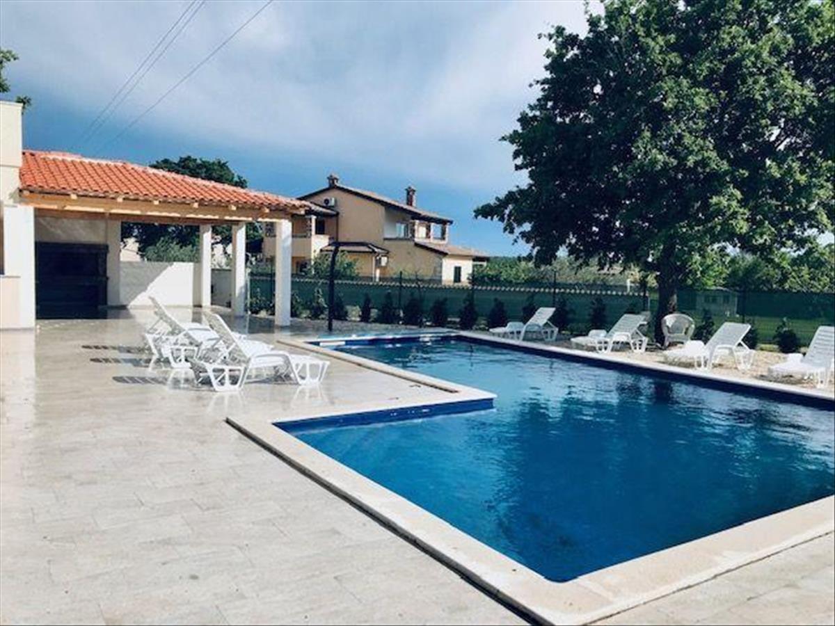 Tágas apartmanház öt apartmannal és medencével Sveti Lovrecben, Poreč régióban. a teljes terület 450 nm. a telek 1801 nm. Ebben a rejtett isztriai gyöngyszemben, Sveti Lovrečben, 1801 m2-es telken eladó egy ötlakásos, úszómedencés ház.A ház udvara 1600 m2 építési célú földterületet foglal magában.