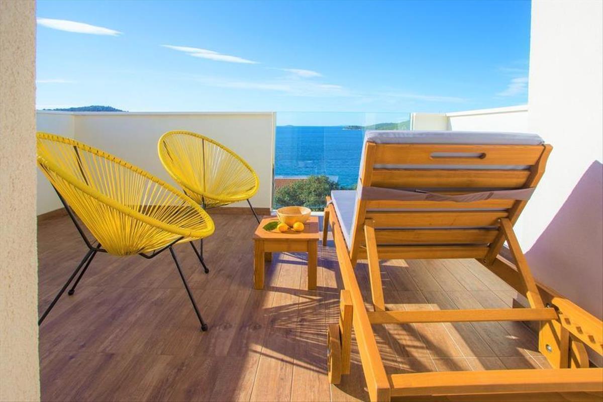 Az első, második és harmadik emeleten külön egy hálószobás apartman található, panorámás tengerre néző kilátással!