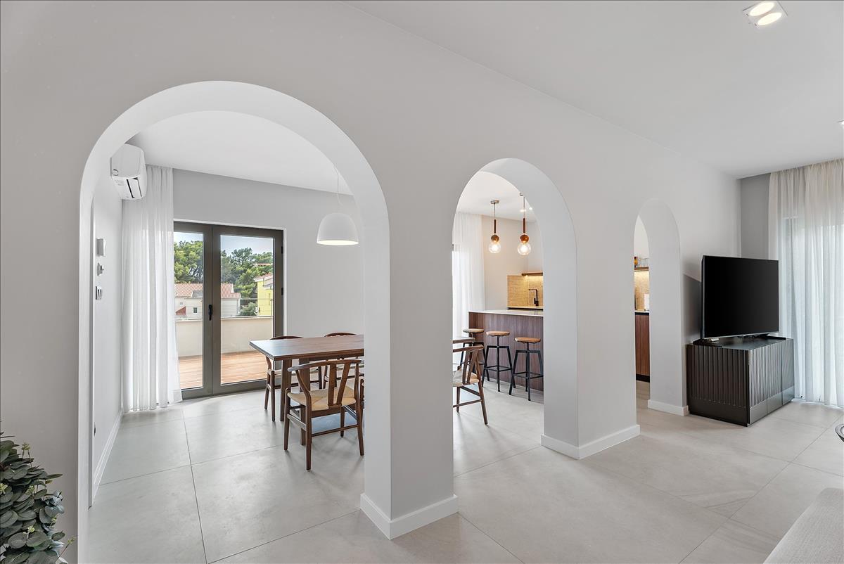 Fedezze fel a lenyűgöző 5 csillagos aparthotelt kiváló helyen, mindössze 100 méterre a strandtól, Split közelében.