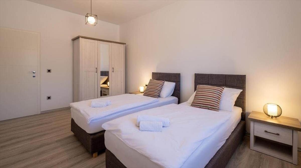 Ezek közé tartozik két 55 m²-es apartman, két 75 m²-es apartman és egy luxus, 150 m²-es penthouse.