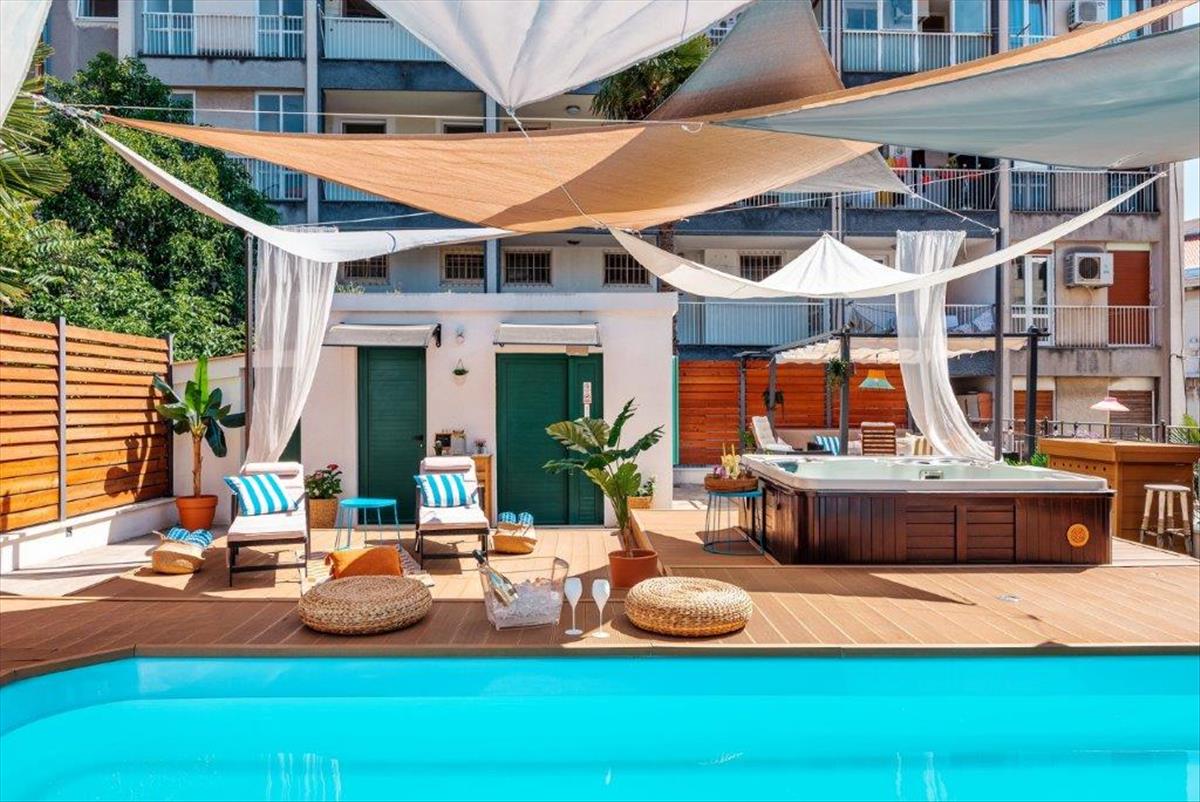 Néhány szoba a városra néz, míg mások egy békés kertre néznek, ahol úszómedence található. Az egyik szobának külön bejárata is van, ami további magánéletet biztosít.